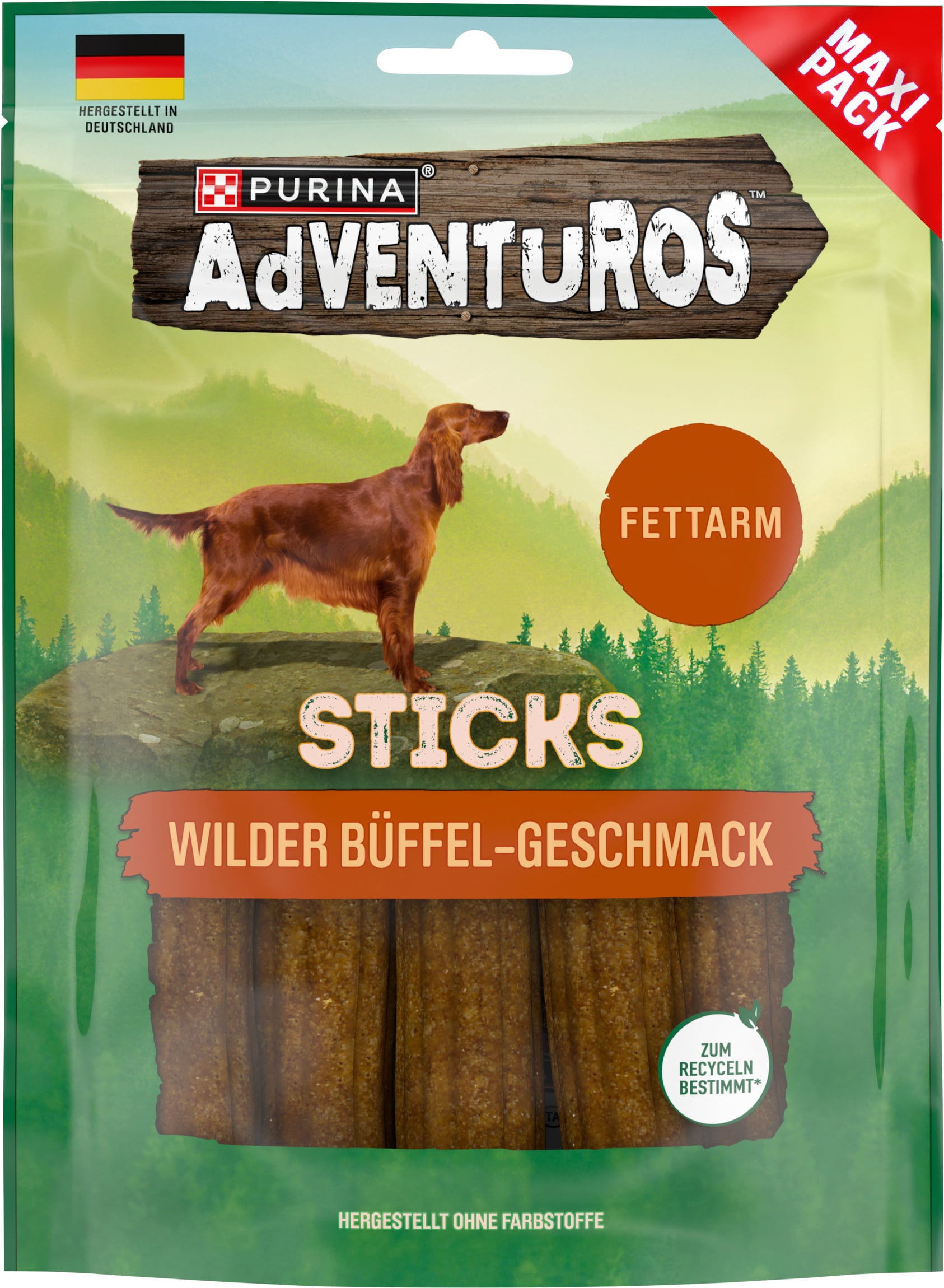 Harte Schale, weicher Kern - dieser Spruch passt auch zu den unwiderstehlichen Sticks mit wildem Büffel von PURINA Adventuros. Die fettarmen Sticks sind voller wilder Aromen, die nur darauf warten, von deinem Hund erkundet zu werden. Eine Köstlichkeit, die immer gut ankommt!
