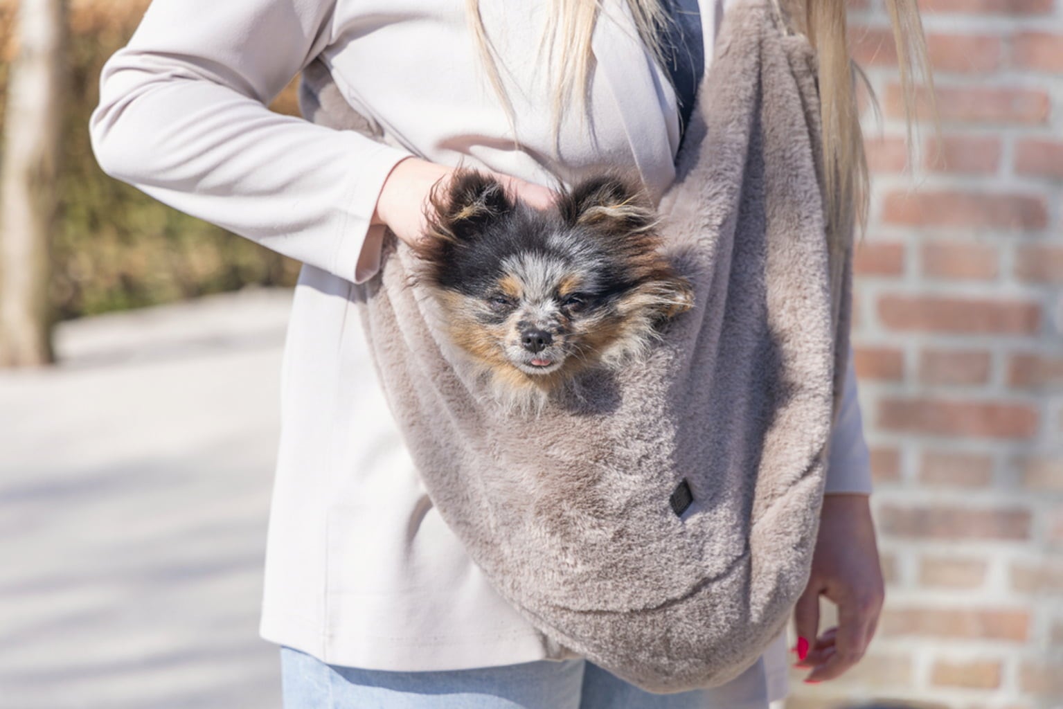 Diese Crossbody-Bag aus weichem Plüsch sieht nicht nur stylish aus, sie bietet deinem vierbeinigen Liebling auch ein kuscheliges Plätzchen zum Ausruhen. So ist sie ein toller Begleiter auf euren gemeinsamen Ausflügen und ein chices Accessoire für euch beide.