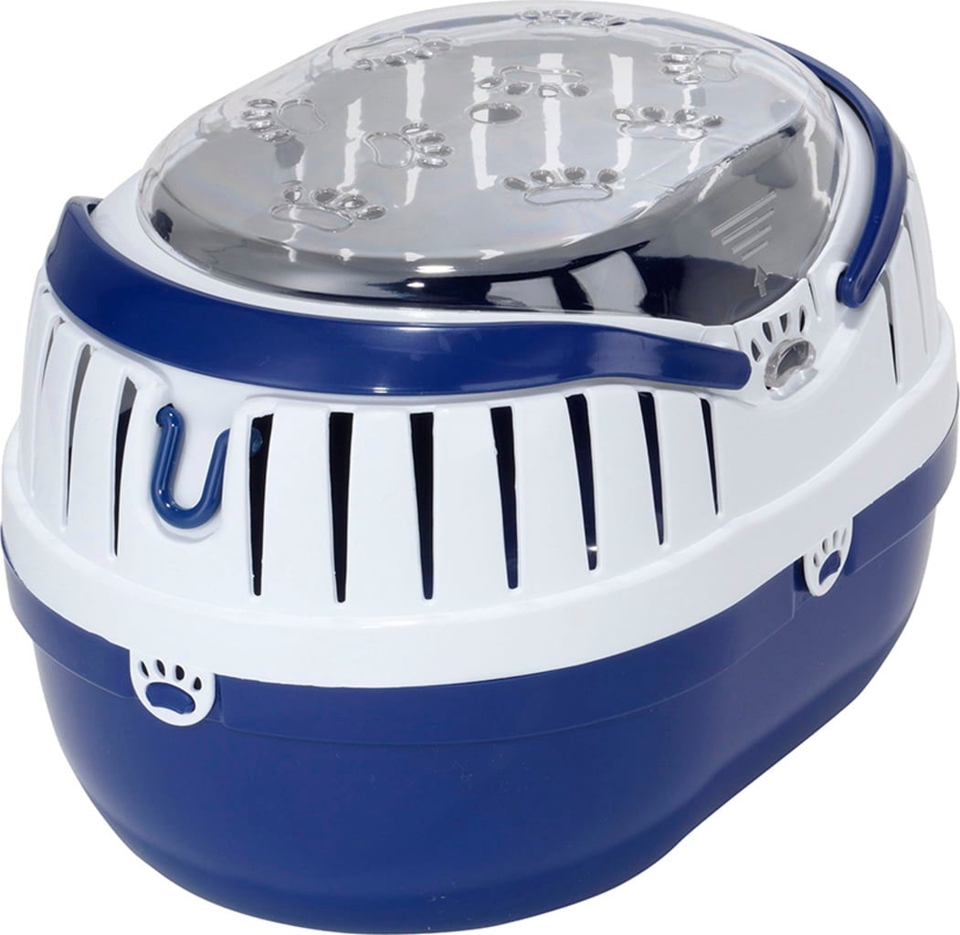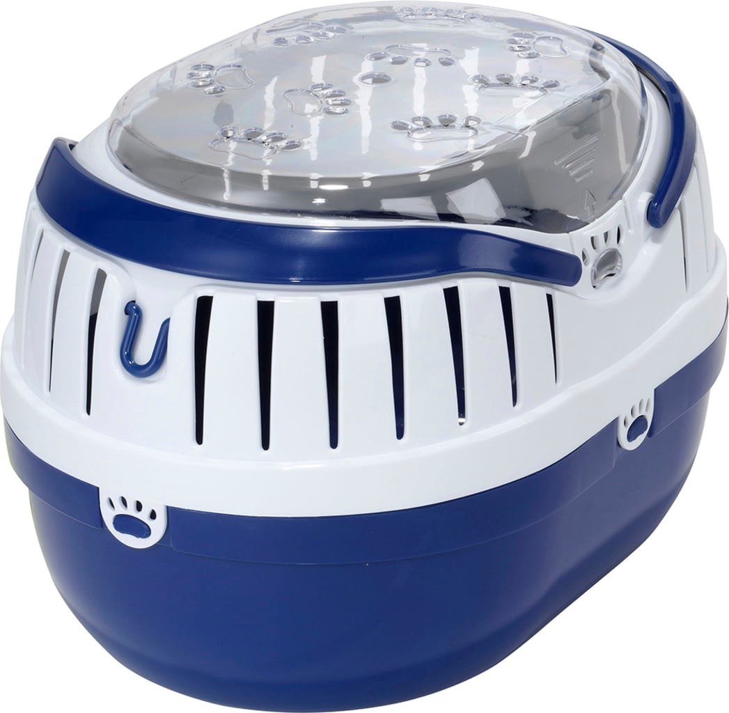 Leicht zu reinigender Kunststoff, ein ergonomischer Handgriff und eine Tür oberhalb für raschen und tiergerechten Zugriff - mit dieser Transportbox bringst du deinen kleinen Schützling sicher von A nach B. Rundum verteilte Lüftungsöffnungen garantieren eine gute Luftzirkulation, wichtig auf längeren Transportwegen.