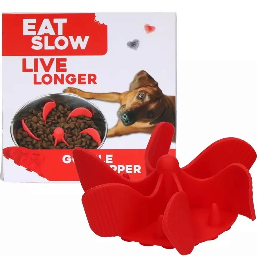 Mit dem Gobble Stopper kannst du deinen Hund dazu bringen, langsamer und weniger gierig zu fressen. Als Einsatz im Futternapf deines vierbeinigen Lieblings erschwert er das Erreichen des Futters, sodass dein Hund automatisch langsamer frisst. Und das ist nicht nur eine geistige sowie körperliche Herausforderung, sondern kann auch zahlreichen durch Schlingen verursachten Problemen vorbeugen.