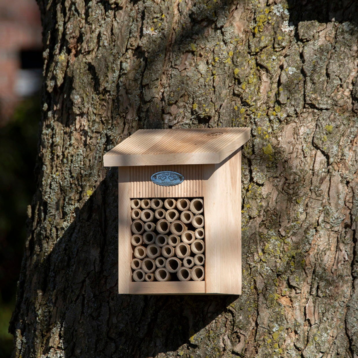 Mit diesem tollen Bienenhaus kannst du einen Beitrag zum Schutz der Nützlinge leisten und ihnen einen sicheren Unterschlupf bieten. Es ist mit Bambusstrohhalmen mit unterschiedlichen Durchmessern ausgestattet, sodass verschiedene Arten von Wildbienen hier nisten können. Eine weibliche Biene bildet verschiedene Zellen in einem Bambusstroh, die sie mit einem Ei und etwas Pollen und Nektar für die Larve ausstattet. Mit diesem durchdachten Häuschen machst du den Nützlingen bestimmt eine große Freude.