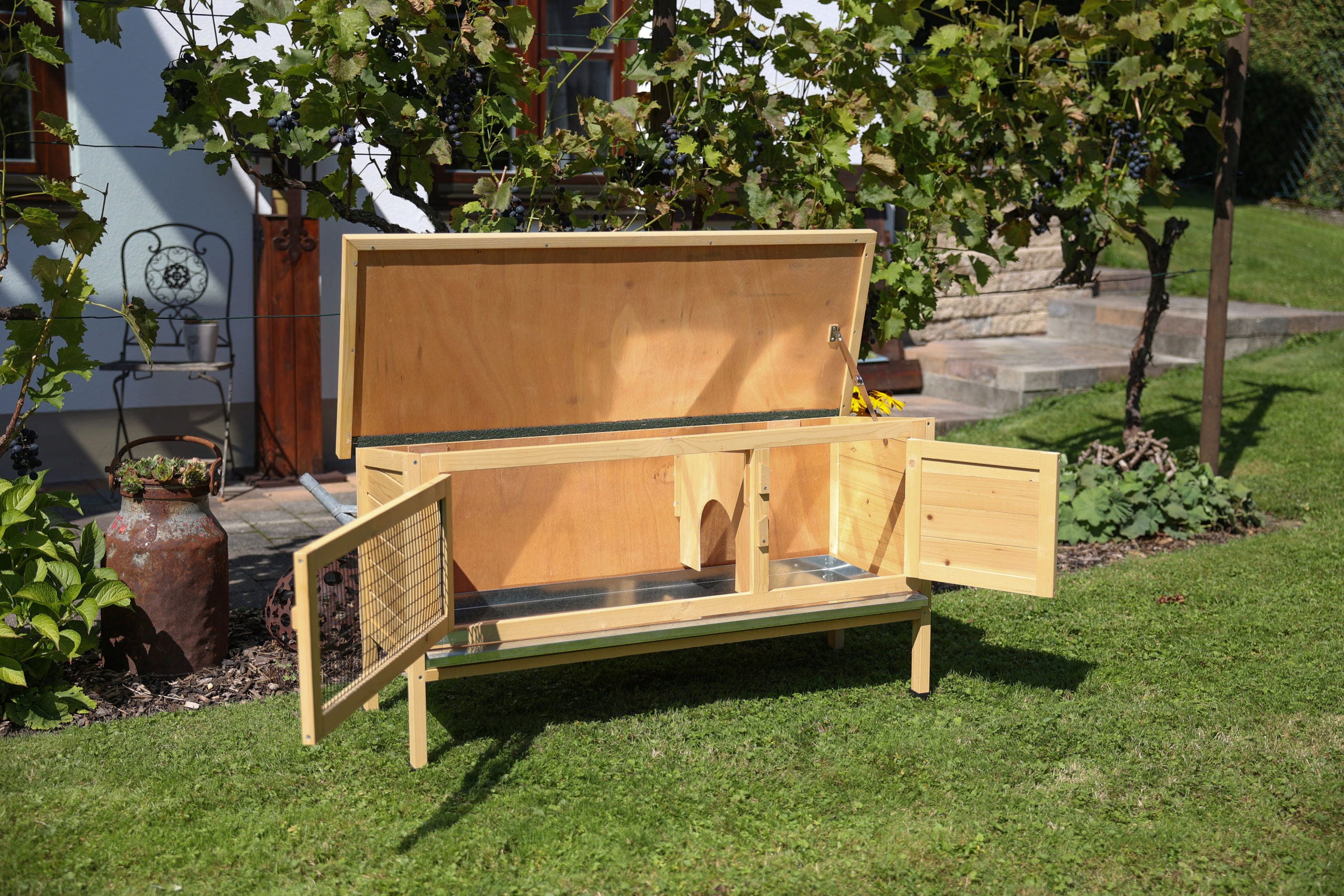 - Mühelose Reinigung: Eine verzinkte, ausziehbare Bodenwanne macht die Stallhygiene besonders einfach und unkompliziert.