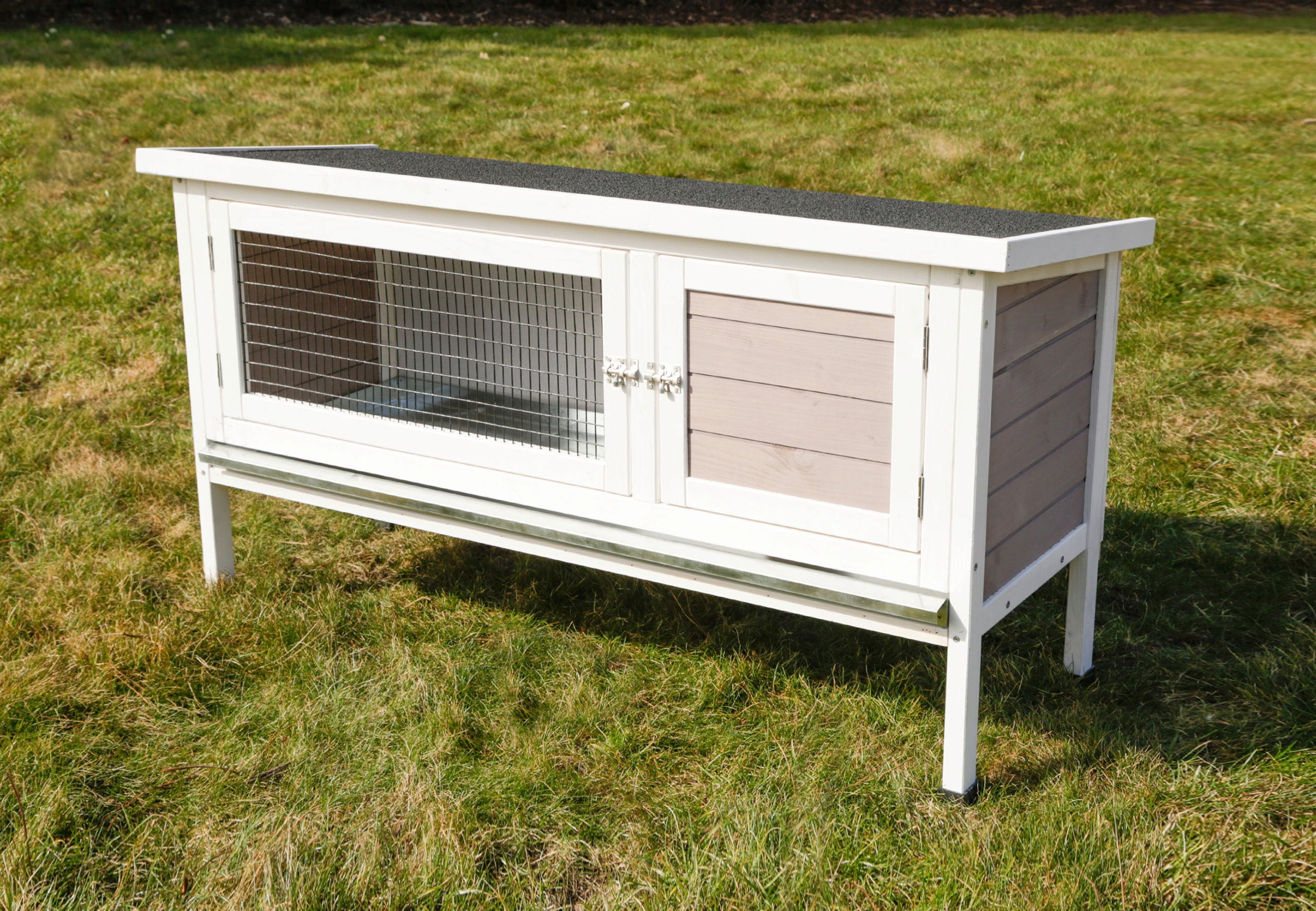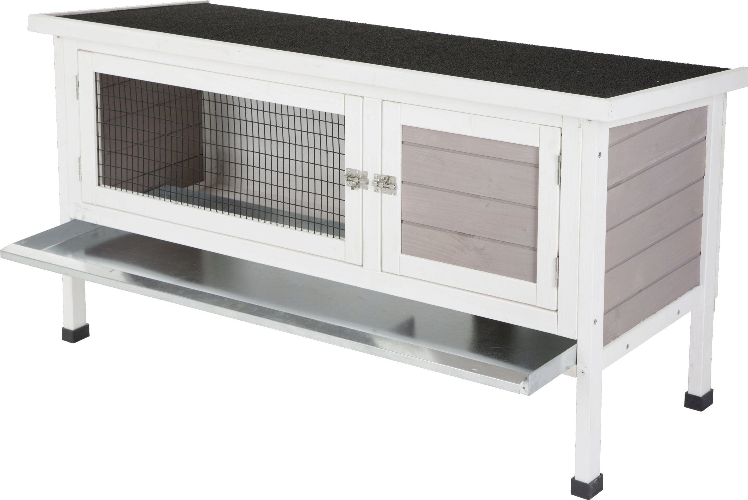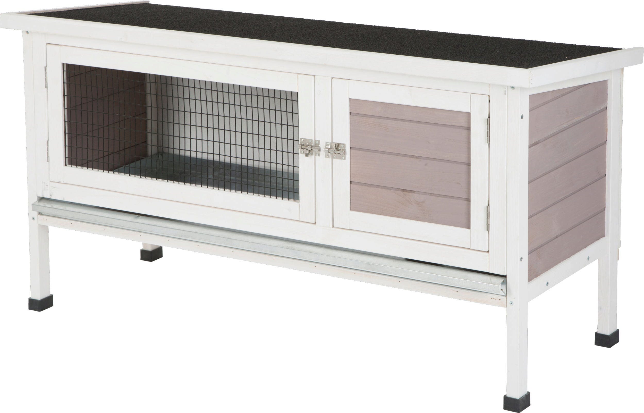 - Einfache Reinigung: Eine verzinkte, herausziehbare Bodenwanne ermöglicht ein schnelles und unkompliziertes Ausmisten des Stalls.