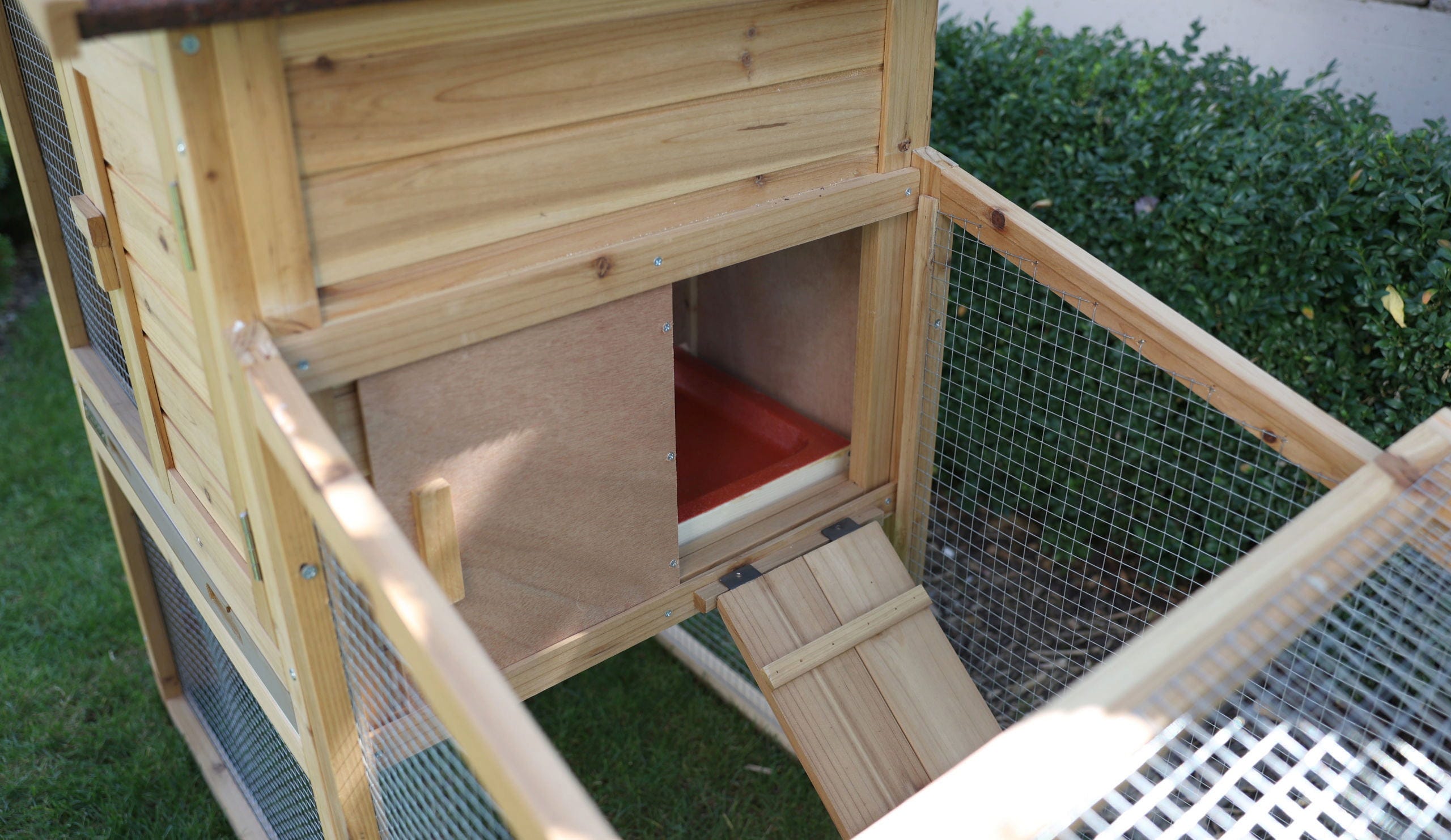- Sicheres Design: Die Gitterränder sind zum Schutz der Tiere sauber mit Holzleisten abgedeckt.