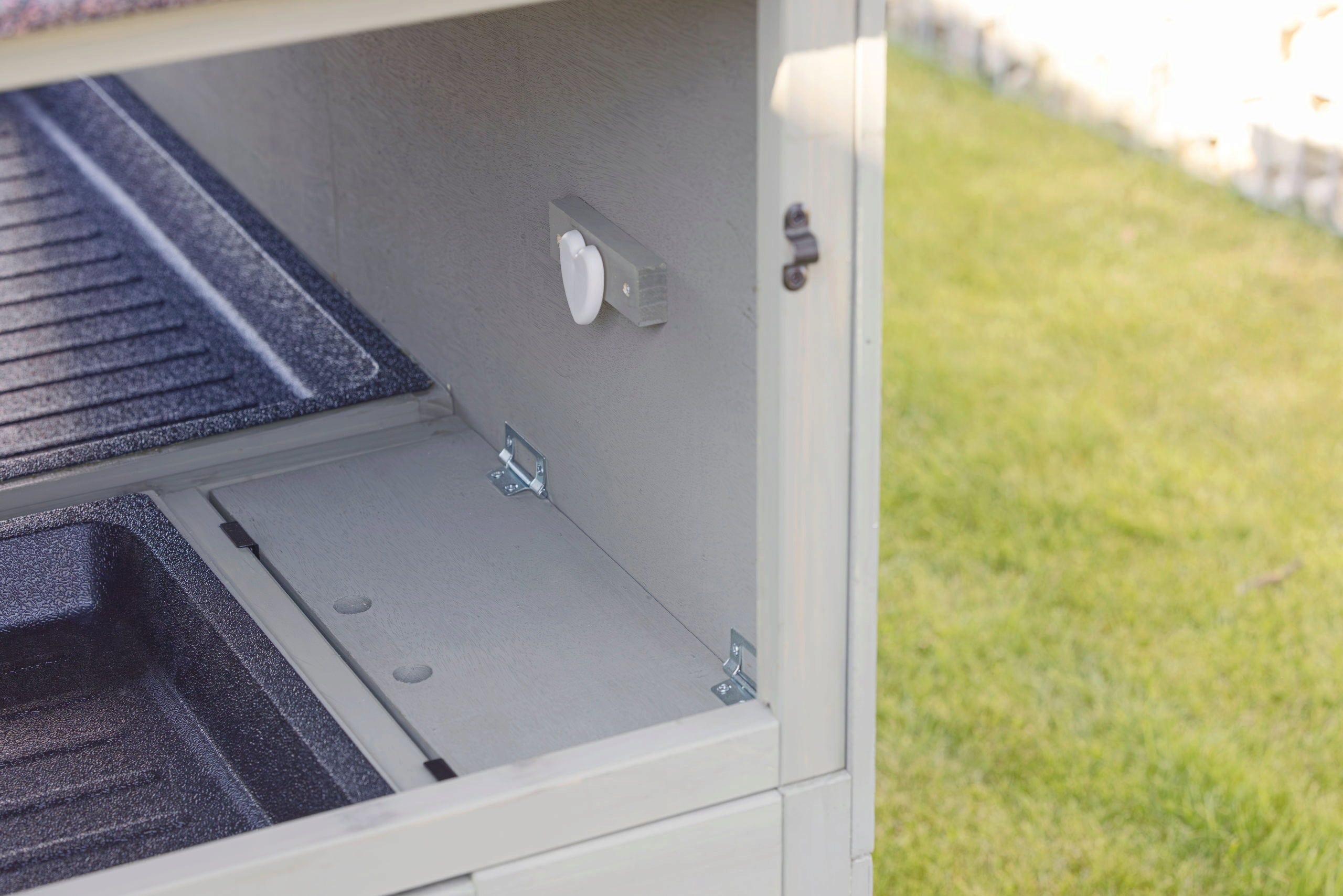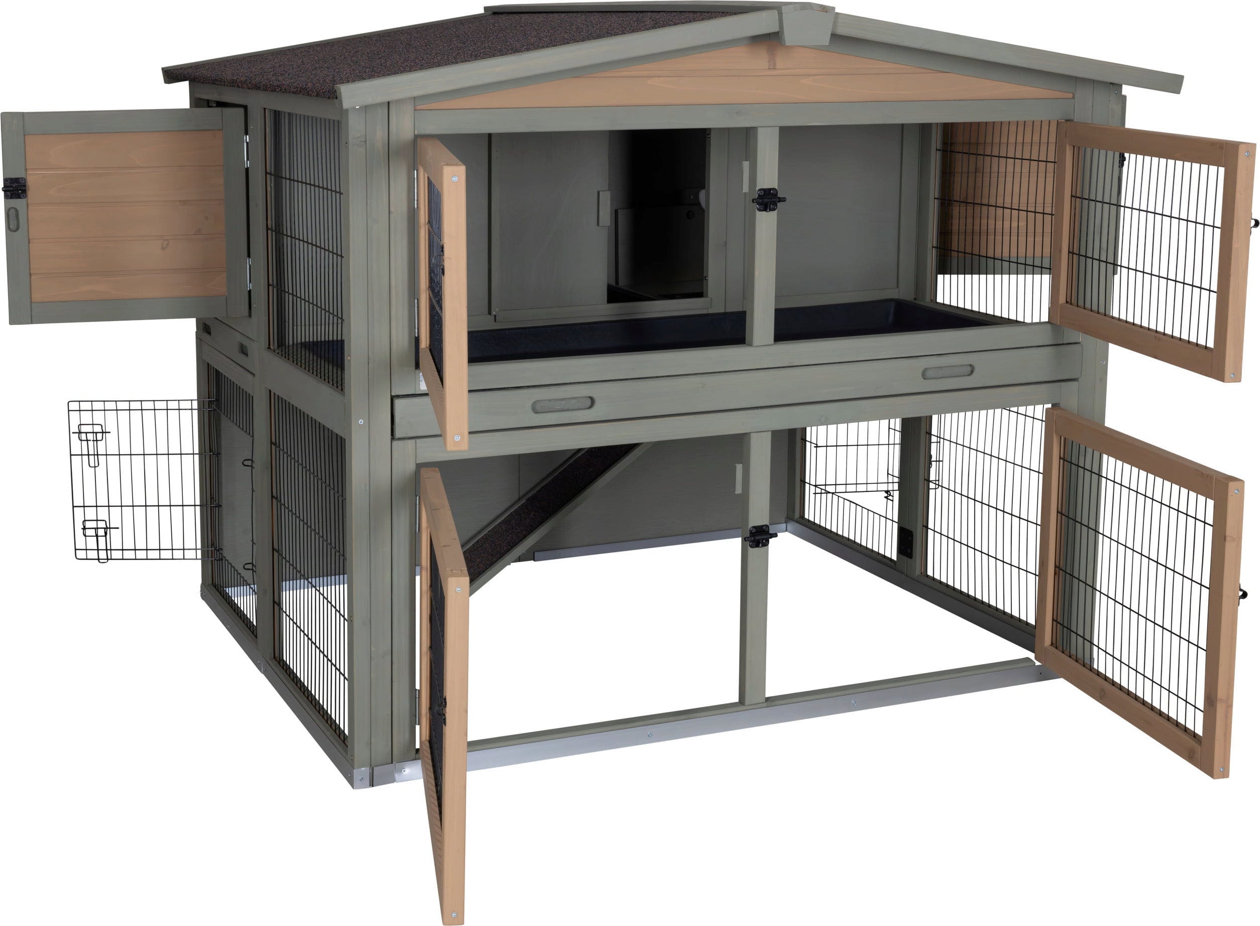 - Erweiterbarkeit: An den unteren Seitentüren können problemlos weitere Freilaufgehege angedockt werden.
