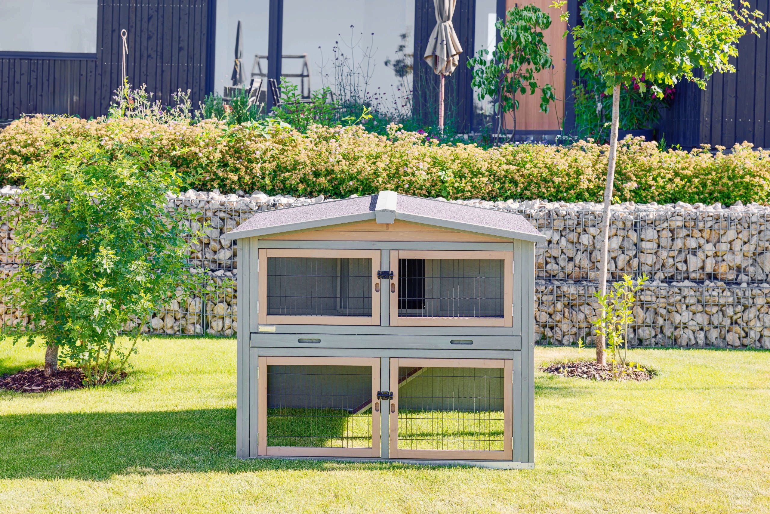 Dieser Stall bietet deinen Tieren ein sicheres und komfortables Zuhause auf zwei Ebenen. Durch die durchdachte Konstruktion ist er besonders langlebig und wartungsfreundlich.