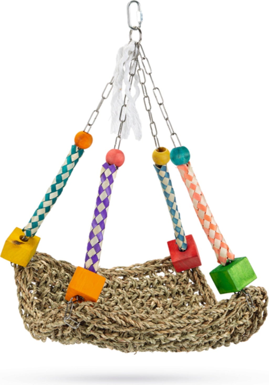 This is not only a fantastic place to relax but also a great spot for playful enjoyment. Made from natural seagrass and featuring various colourful elements like ropes, cubes, and balls, it brings plenty of variety and fun to any birdcage.