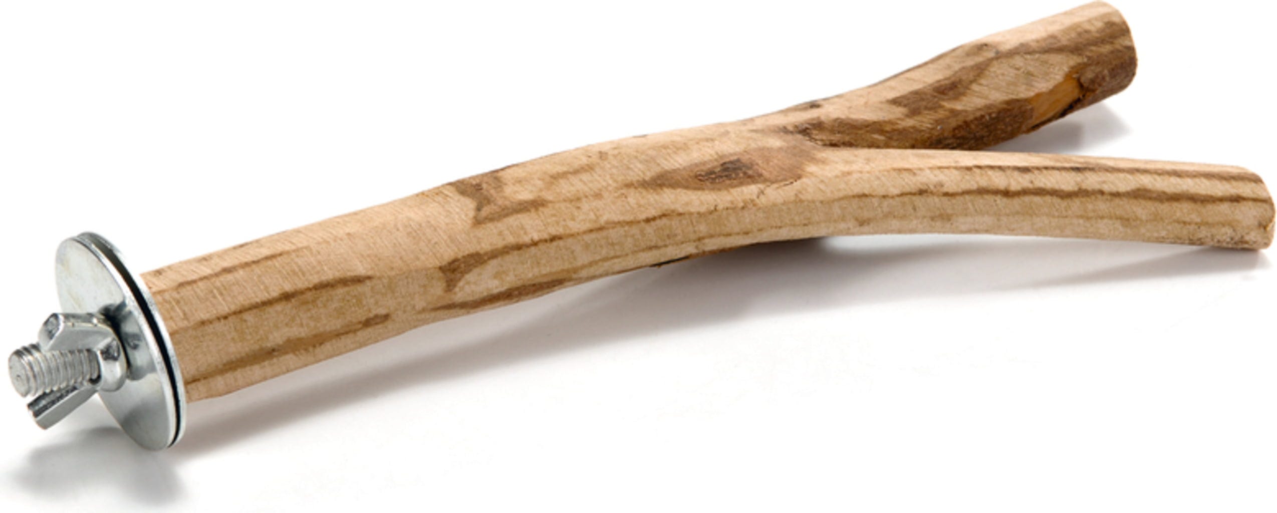 This wooden perch enables optimal space utilisation in the bird enclosure and offers an additional seating spot for its inhabitants. It is secured with a wing nut and is particularly eye-catching with its natural appearance.