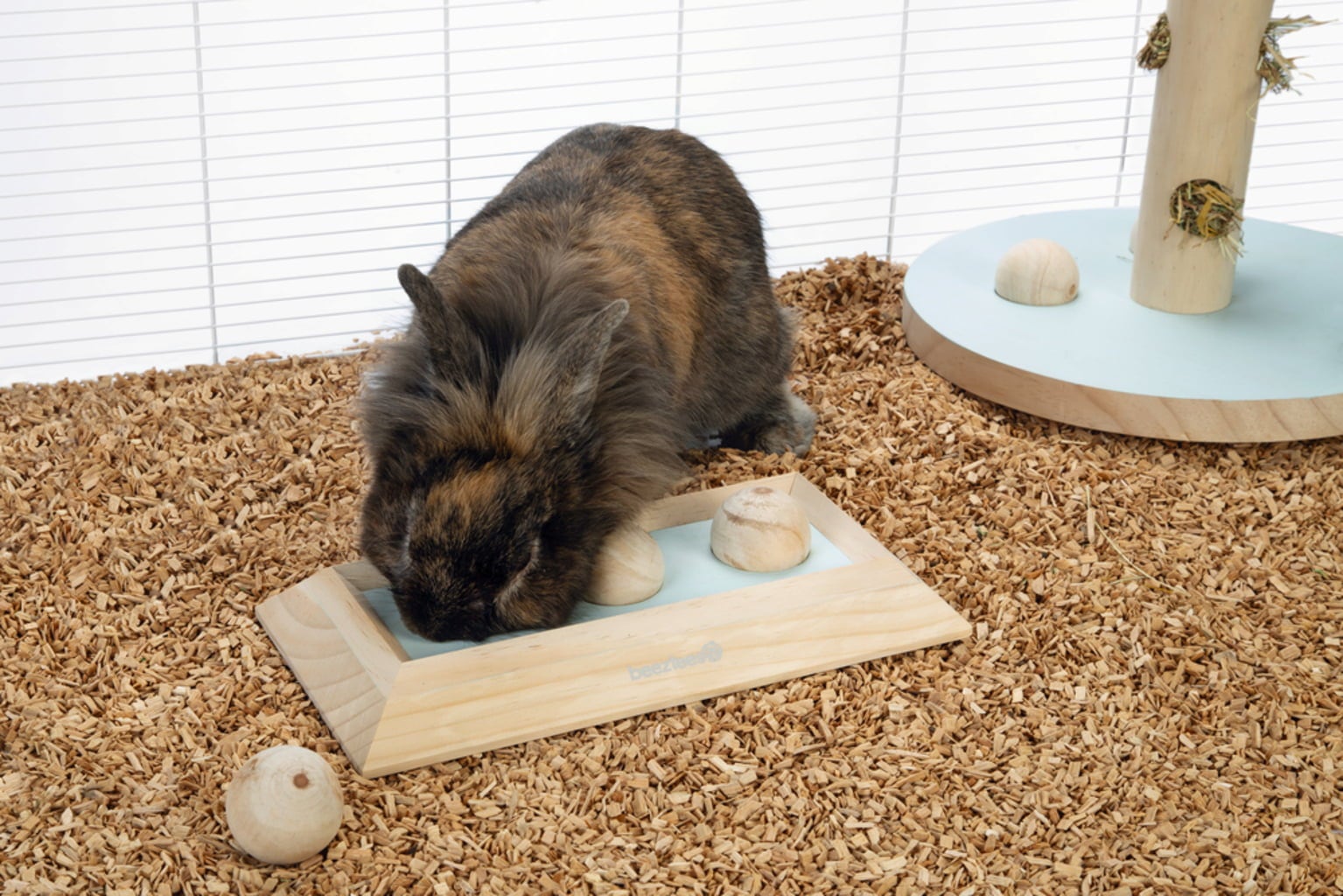 Hide their favourite snacks under the three wooden balls and let them discover how to reach the treats themselves. This brings a welcome change to the routine of small pets.