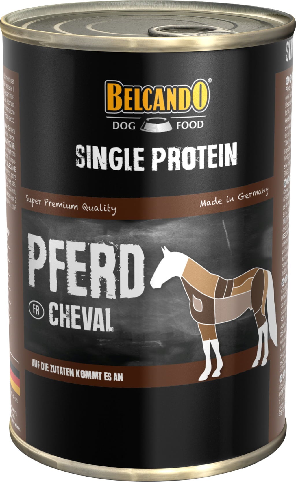 The Single Protein premium canned pet food requires no additional supplements. It contains exclusively carefully prepared horse meat, elevating your dog's taste experience.