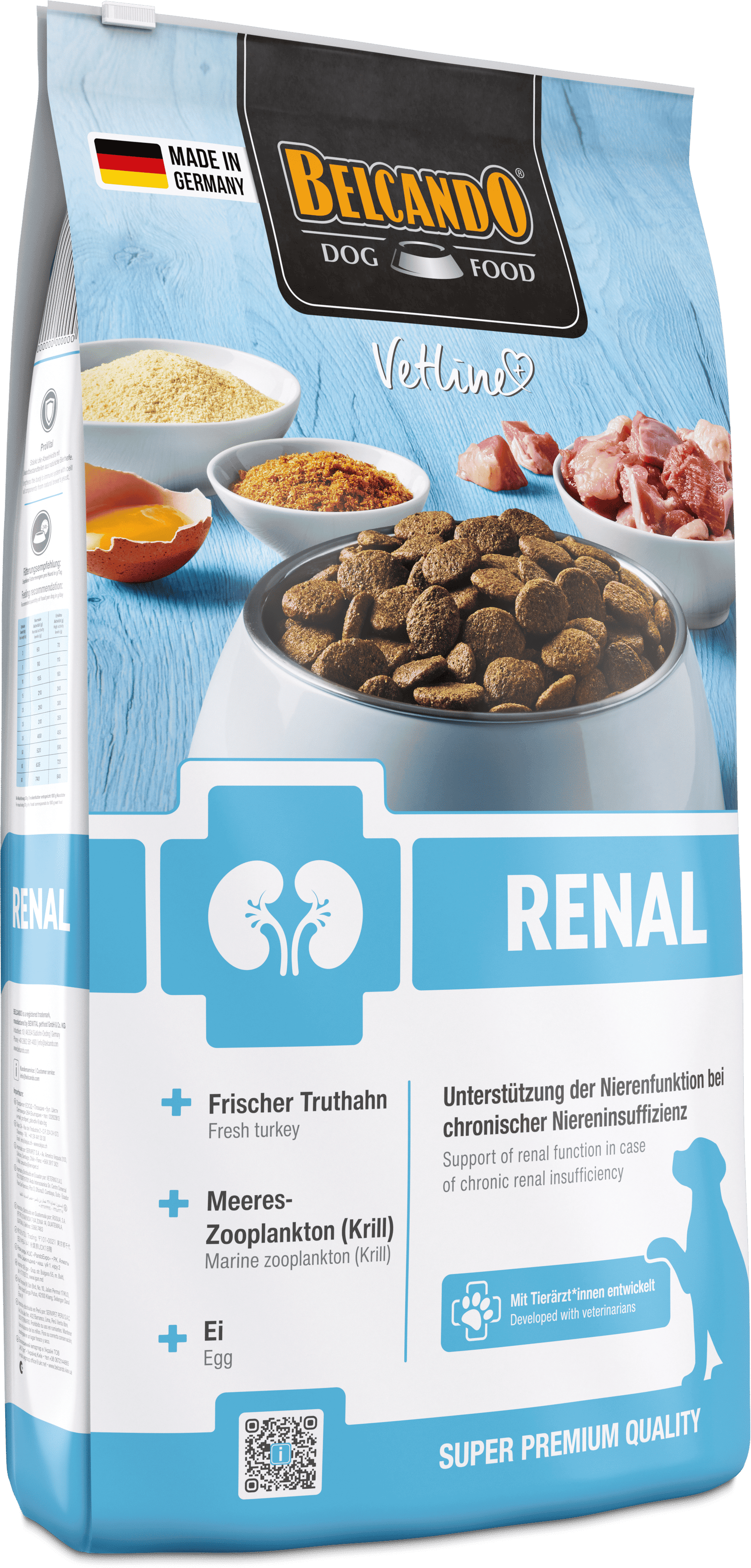 Targeted nutrition is a vital component in improving the quality of life for dogs struggling with kidney issues. BELCANDO Vetline Renal dry food is a special diet food for acute or chronic renal insufficiency, providing support without compromising on flavour. Made with high-quality ingredients such as fresh turkey, egg and krill, this recipe ensures excellent acceptance even by picky eaters. This specialised diet helps dogs maintain their vitality and well-being despite health challenges.