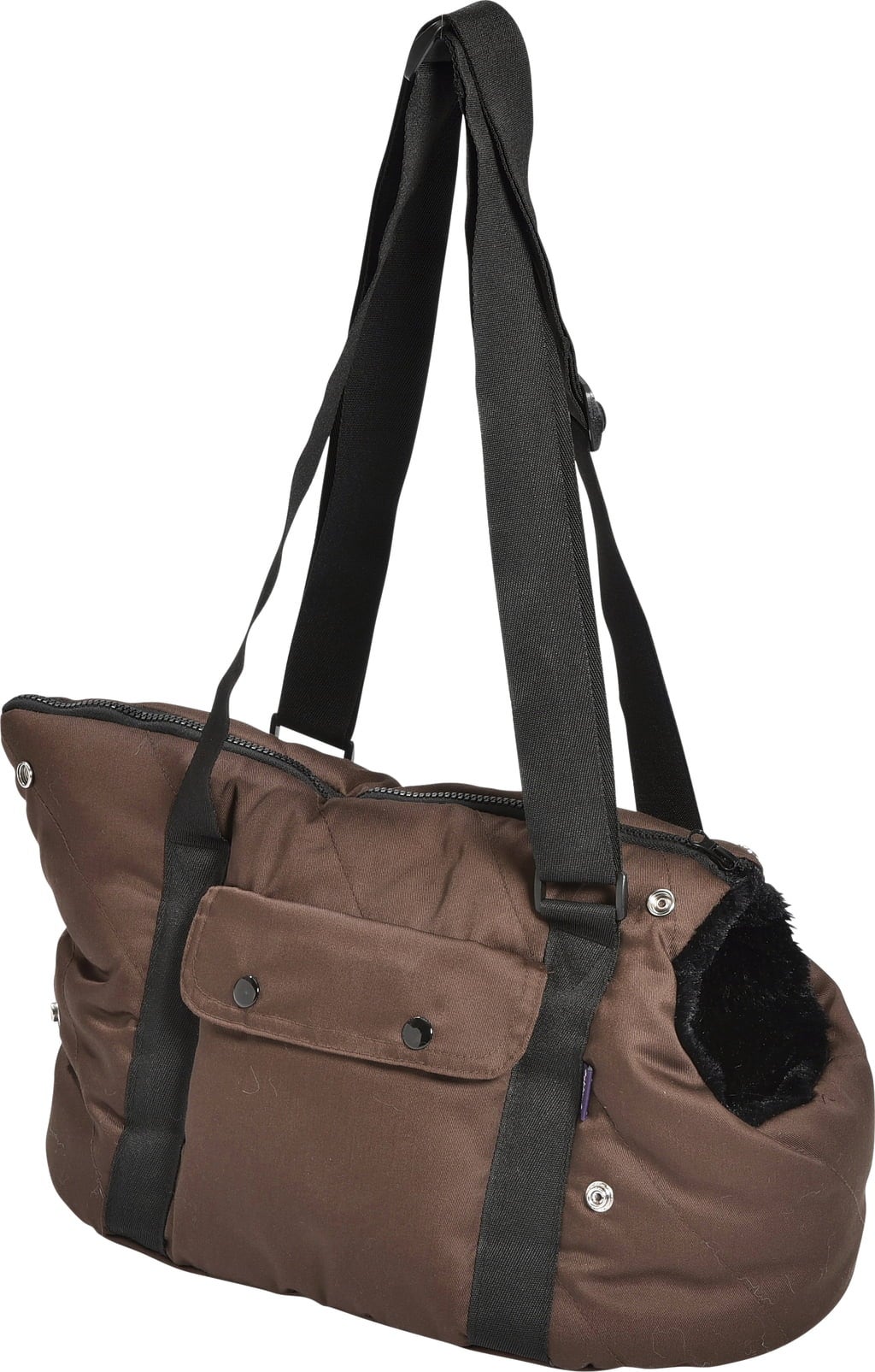 French chic combined with luxurious dual-function comfort - the Sac Moelleux by Bobby is a lightweight transport bag that effortlessly transforms into a cosy bed: simply fold down the edges and fasten them with the sewn-in snap fasteners. The bag is fully lined with silky plush fur; the solid base plate can be removed if necessary, and the plush can be taken off. Adjustable shoulder straps, a high-quality zip, and a small side pocket with an envelope closure ensure maximum carrying comfort - for both pet and owner.