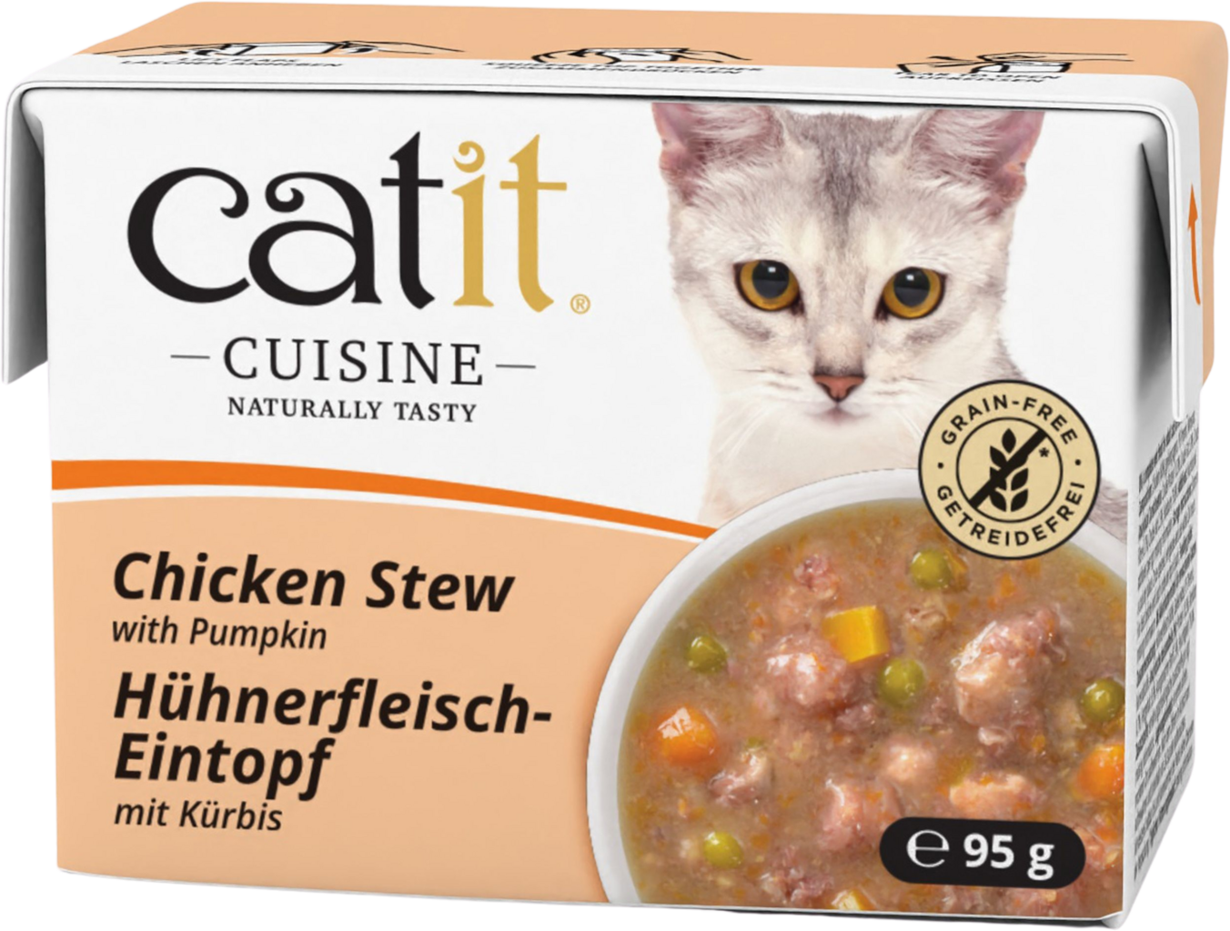 Flavourful, protein-rich chicken, nutrient-dense peas, fine carrots, and fibre-rich pumpkin make up the delicious contents of this hotpot that is sure to delight your cat.