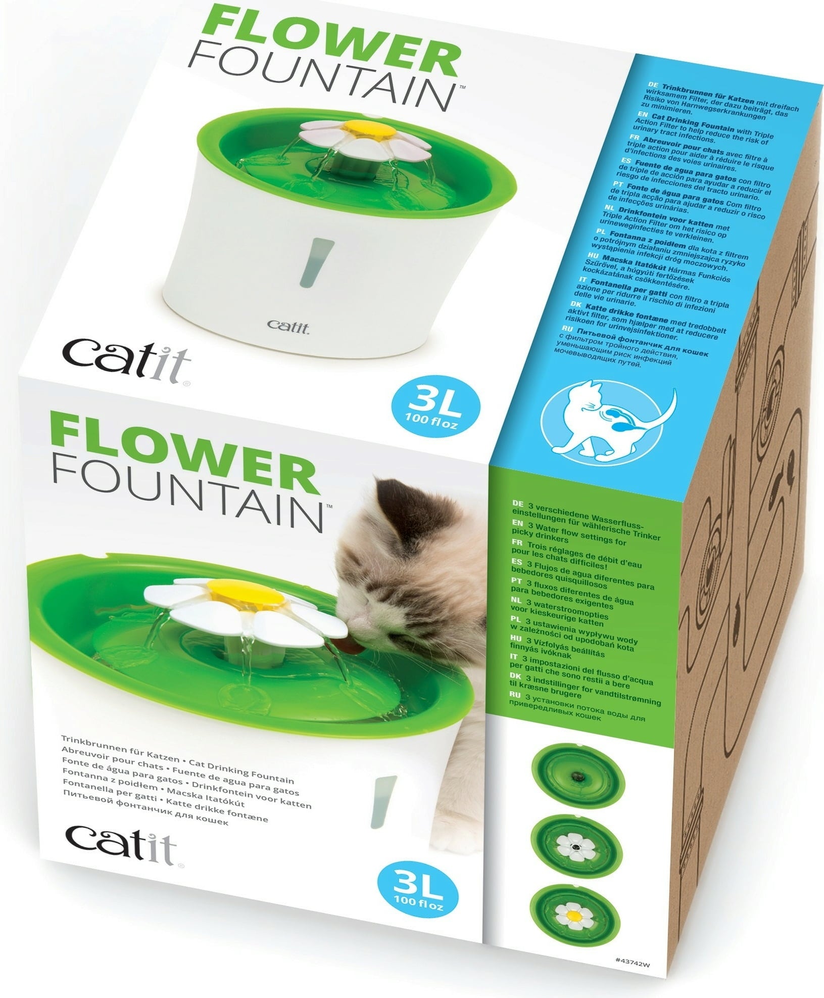 Frequent urinary tract infections in cats often result from insufficient water intake – cats are not naturally inclined to drink a lot! The Catit Flower Drinking Fountain attracts cats with three different water flow options, encouraging them to drink. All fountains come with integrated filters that ensure a constant supply of fresh water through effective triple filtration. Reliable technology makes operation and maintenance straightforward: