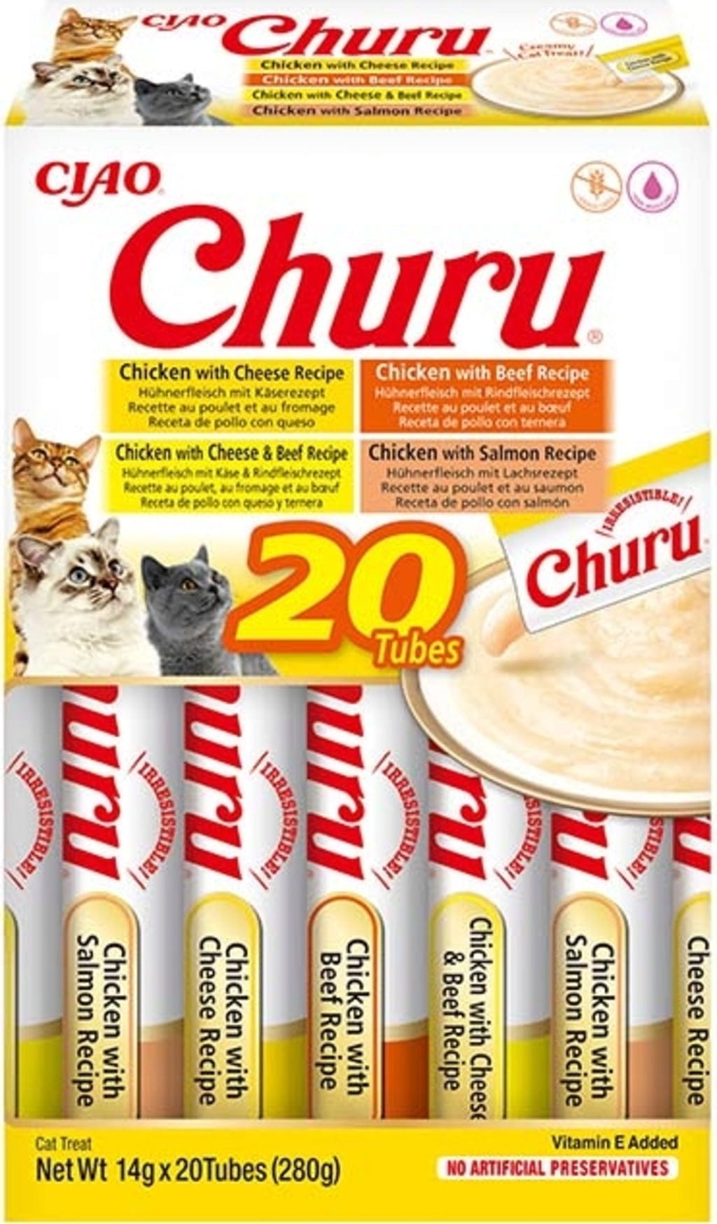 Churu Lickable Treat 20x14g Box, Chicken- and Beef Variations (280 g)