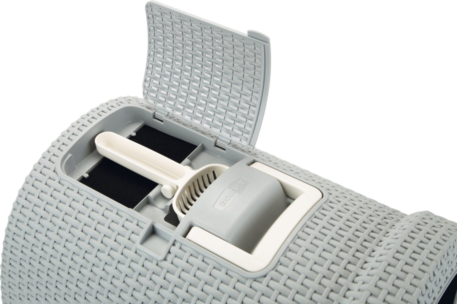 This grey cat litter box meets the highest standards both visually and functionally, impressing with its elegant design and clever construction. It is the perfect choice for style-conscious cat owners and pampered cats.