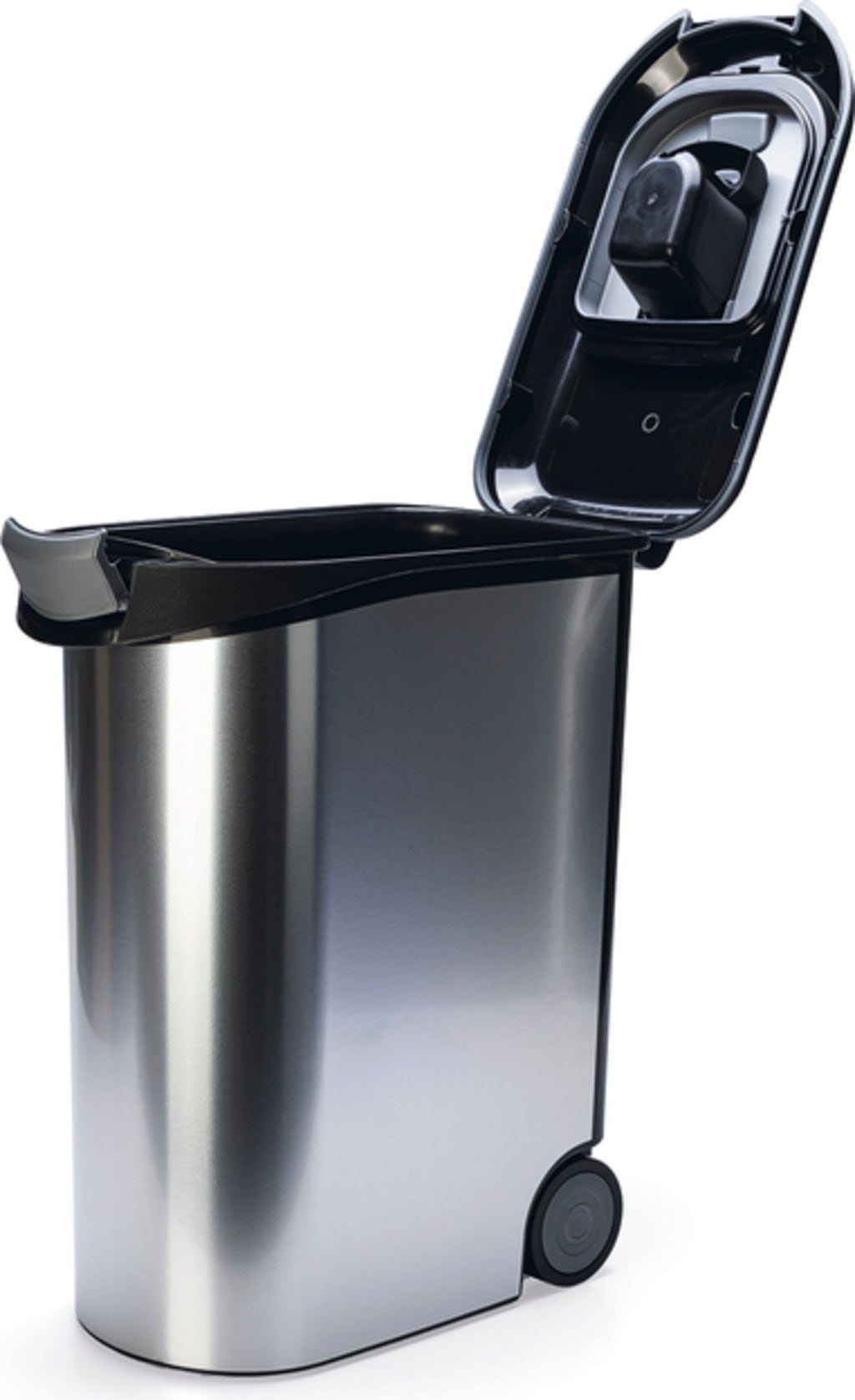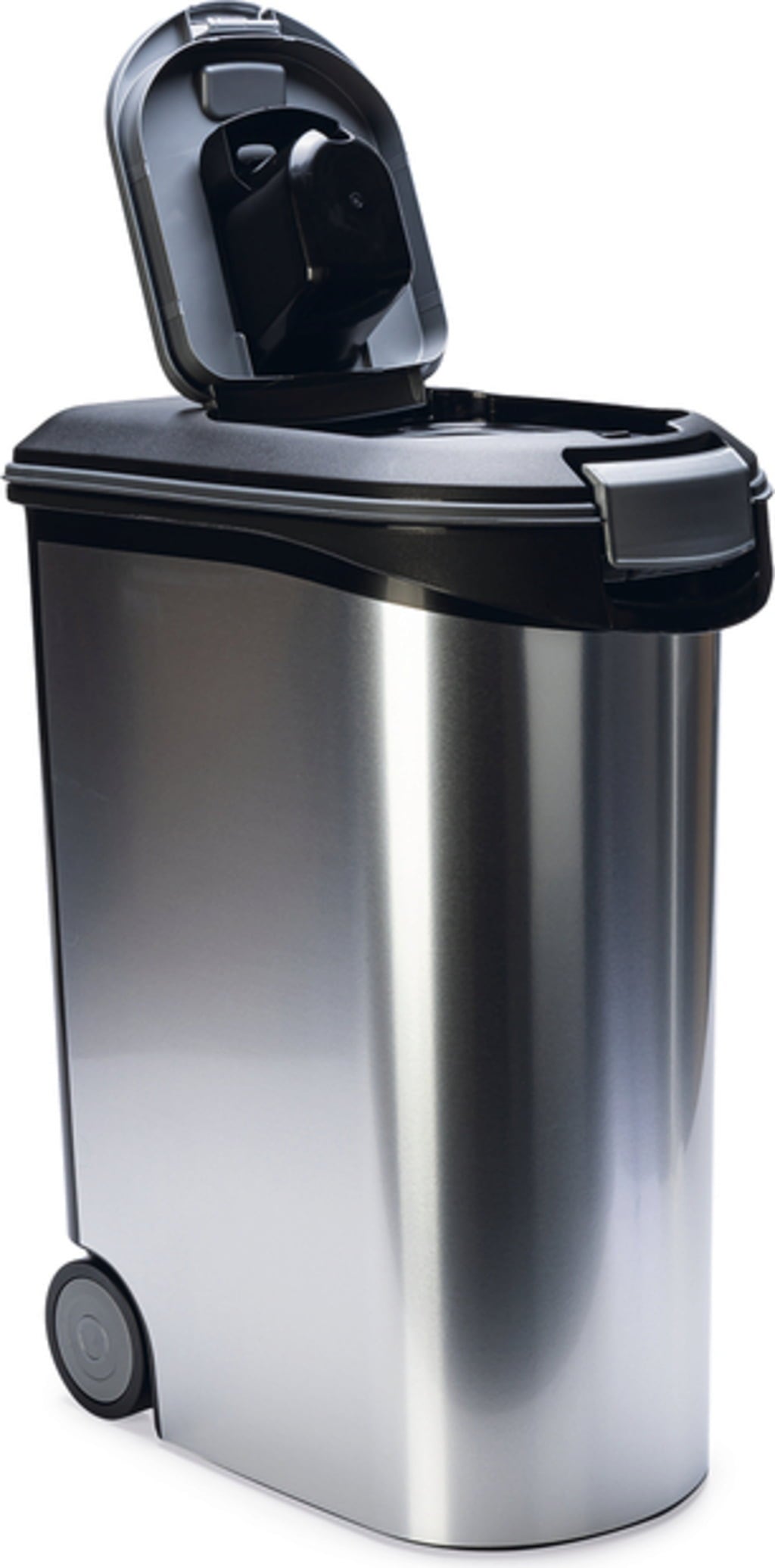 This premium pet food container with an elegant metallic look offers a particularly stylish way to store dry food for your dog. Not only does the container look great, but it also keeps pet food fresh for extended periods.