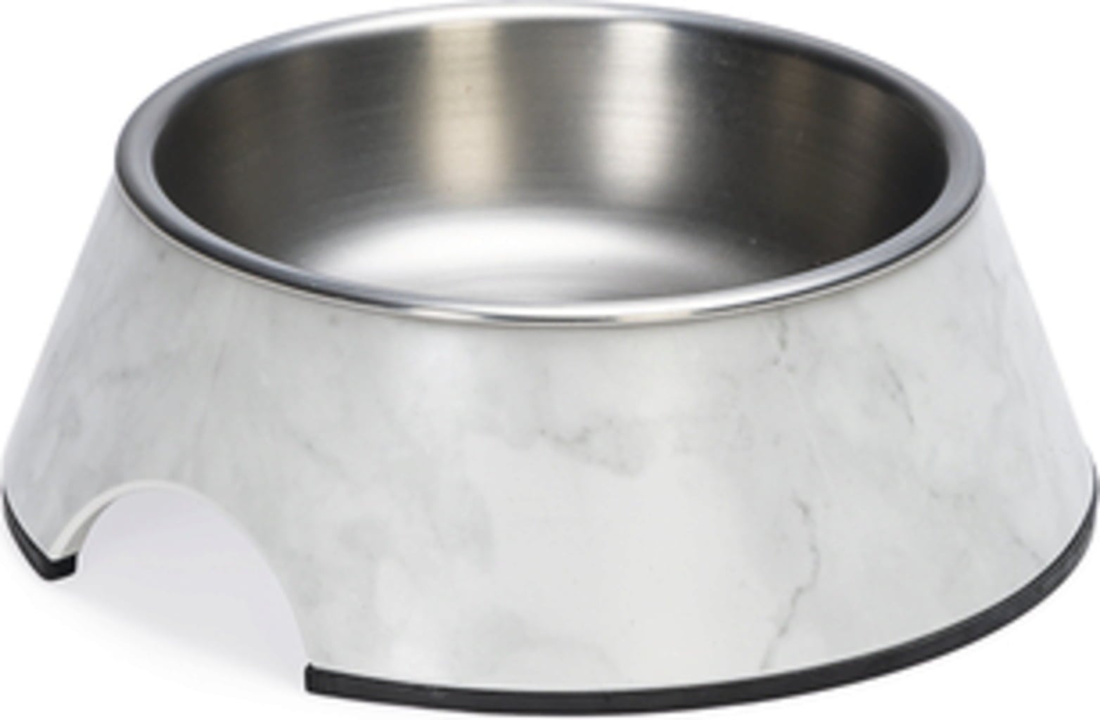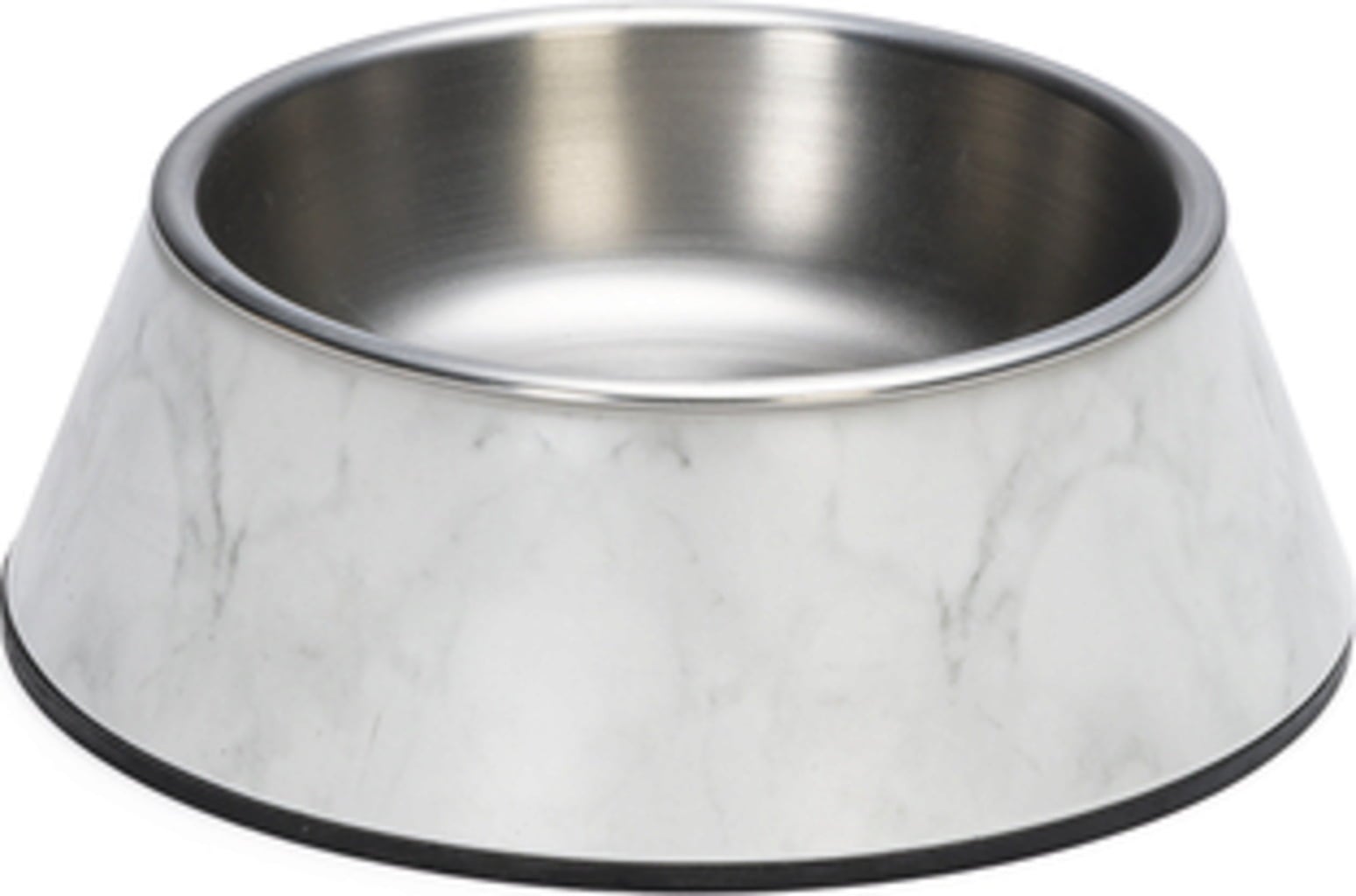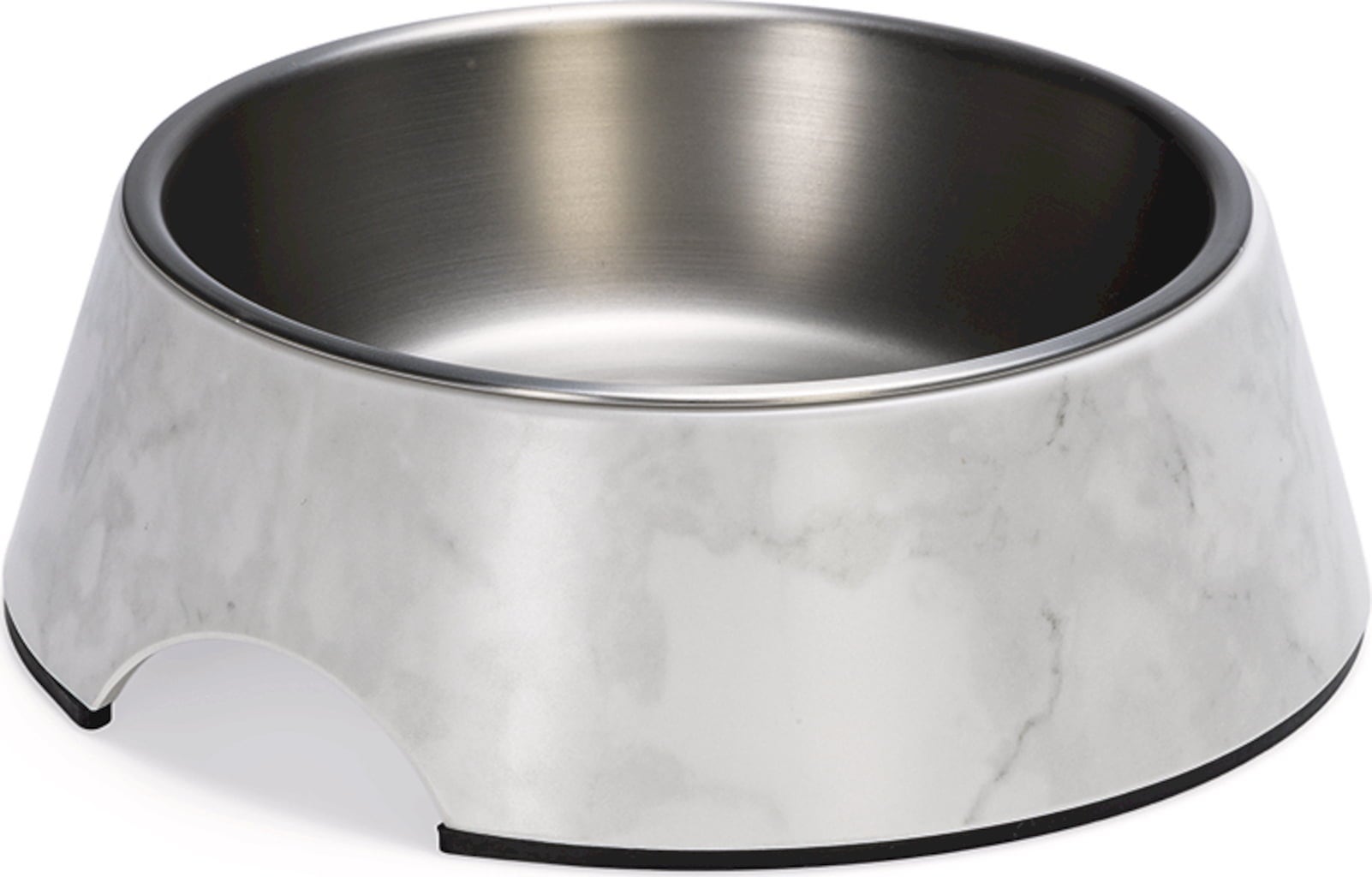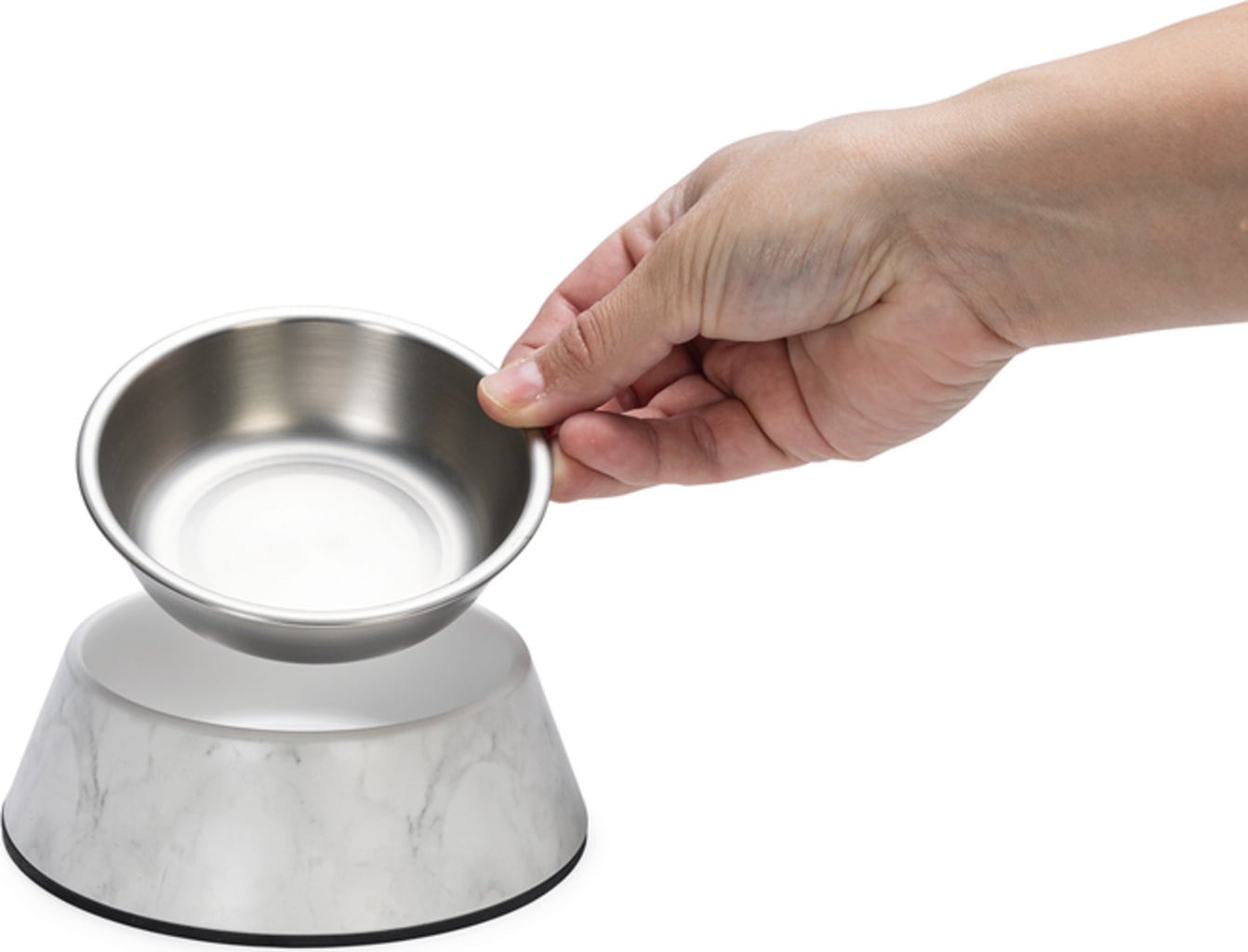 This stylish dog bowl impresses with its luxurious marble-look and is a true eye-catcher in any stylish dog household. The removable inner bowl made of matte stainless steel not only looks elegant but is also practical and hygienic. The non-slip coating on the base prevents slipping, ensuring the bowl remains in its rightful place.
