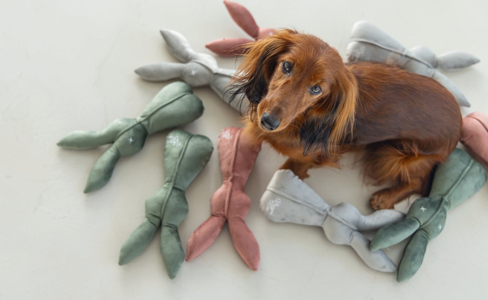 This rabbit, crafted from wonderfully soft velvet, with its extra-long ears, is perfect for cuddling and playing. Thanks to its modern design, it seamlessly fits into any stylish interior, making it the first choice for dog owners with high aesthetic standards.