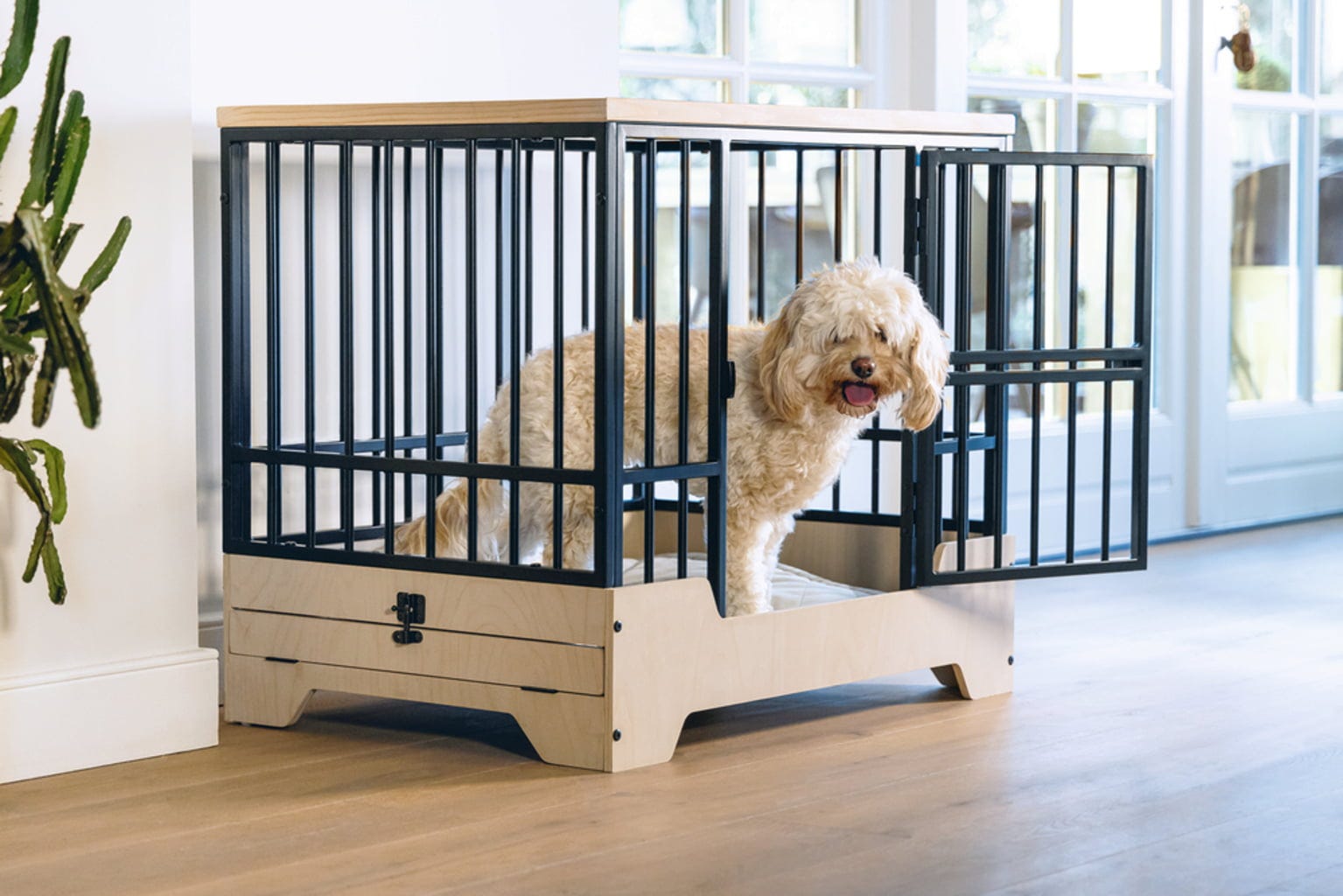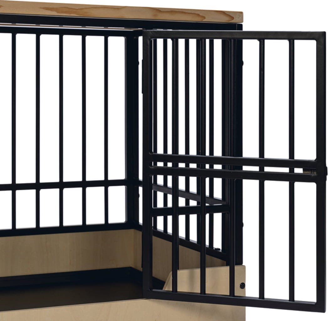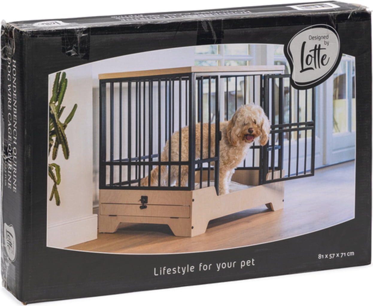This stylishly designed cage is a cosy retreat for your dog, offering maximum safety at all times. With its elegant design, it fits seamlessly into any interior and, thanks to the removable cage frame, it can also be used as a dog basket at home.