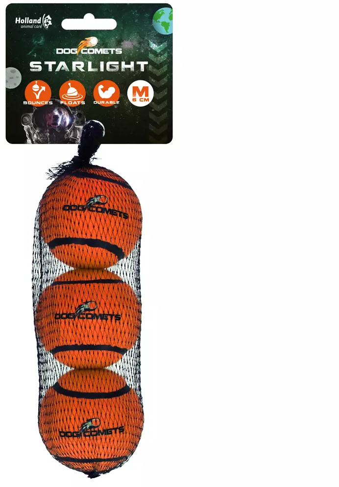 Dog Comets Starlight Tennis Ball Orange, M (3-piece pack)