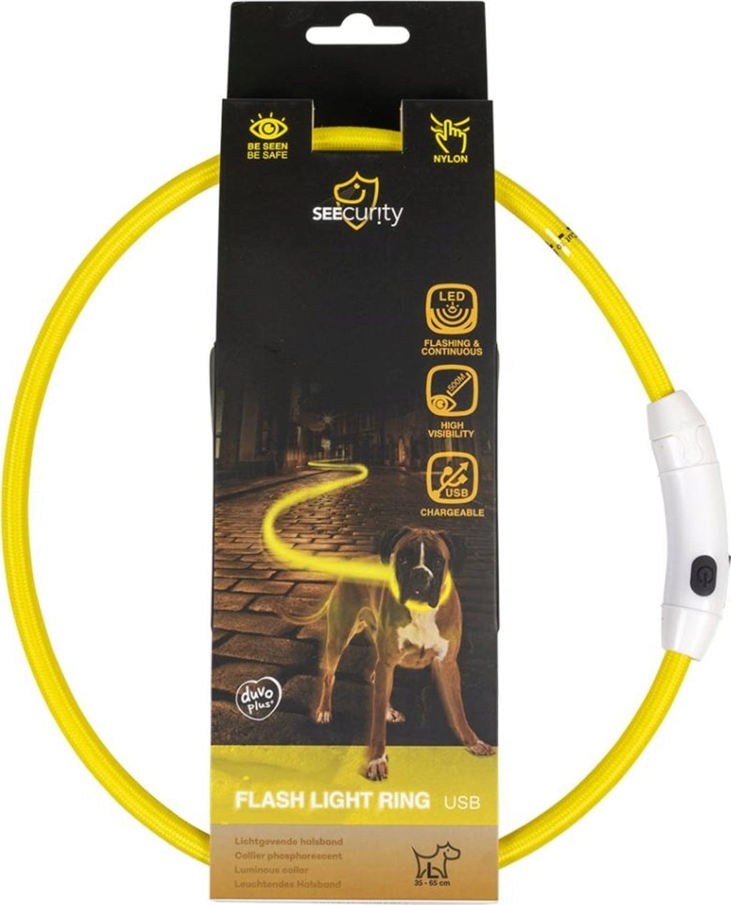 Duvoplus Flash Light Collar USB nylon yellow, L