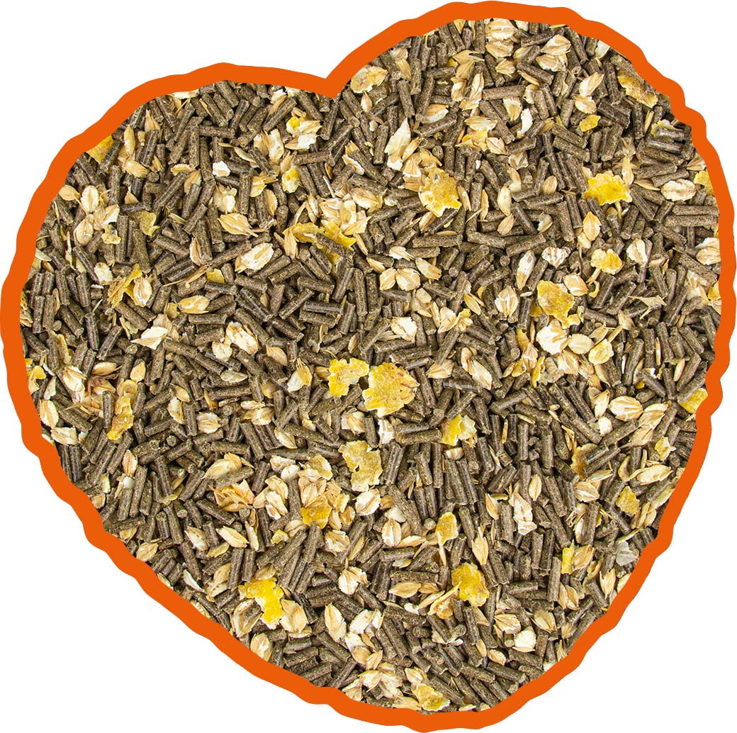 This is a complementary mix to the main feed. You can find the recommended daily amount on the packaging. Serve with hay as a source of fibre.