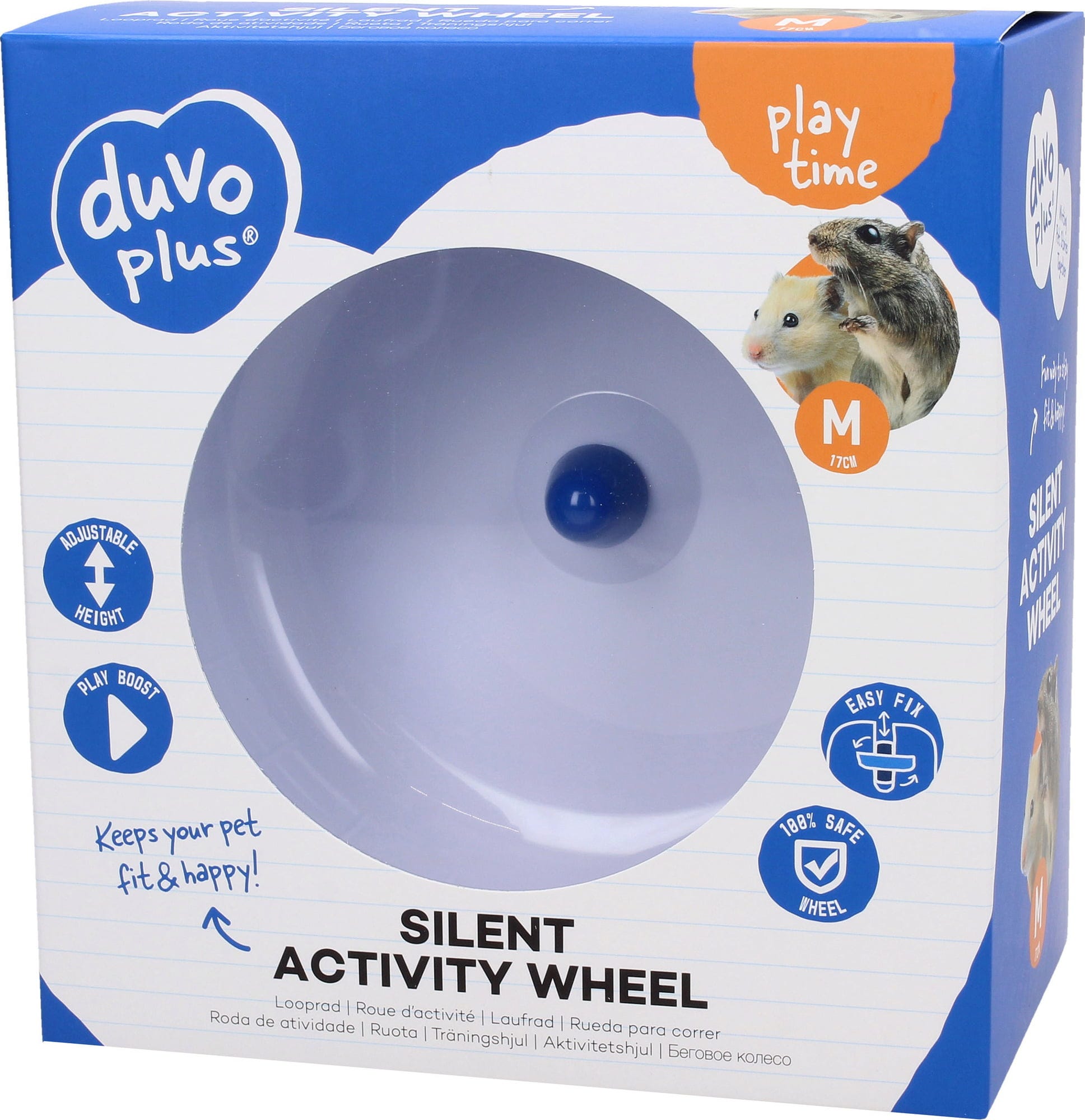 Made of plastic, the duvoplus silent running wheel keeps rodents fit and guarantees many hours of play daily! It comes with a base that allows the size and height of the exercise wheel to be adjusted. But the wheel can also be attached directly to the cage. Best of all, although it will provide many hours of play and activity to your rodents, you never have to worry about it getting too loud. It has been specially designed to be quiet so it won't get on your nerves!