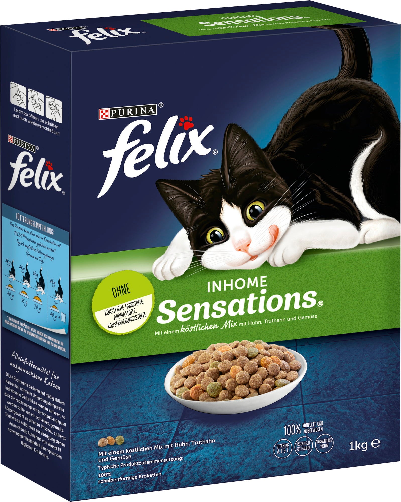 Felix Inhome Sensations is the perfect dry food for little feline gourmets. The irresistible mix of chicken and vegetables isn’t just a feast for the senses – it’s pure delight for your furry family member.