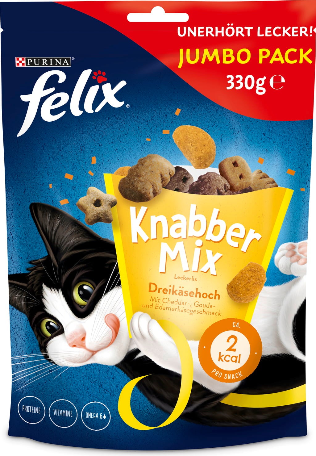 With the Nibbles Mix Triple Cheese by Felix, every cheese lover's dream comes true! Delicate, savoury flavours of cheddar, gouda and edam… mhmm! The irresistible mix comes in different delightfully aromatic shapes, each containing about 2 kcal. Purr-fectly delightful!