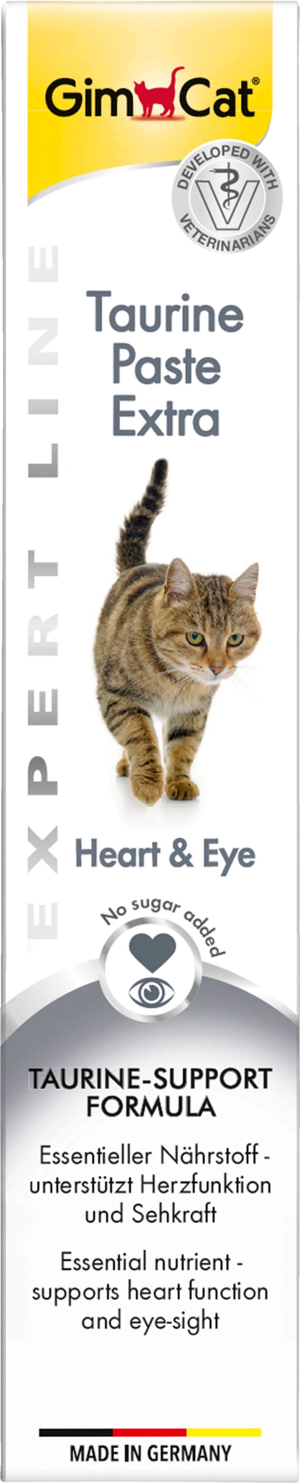 Taurine Paste Extra by GimCat indulges your cat in a very special way. In addition to taurine, the paste contains a valuable vitamin B complex and calcium. It can be given to cats from the 6th week onwards as a treat. The paste is free from added sugar and artificial flavours.