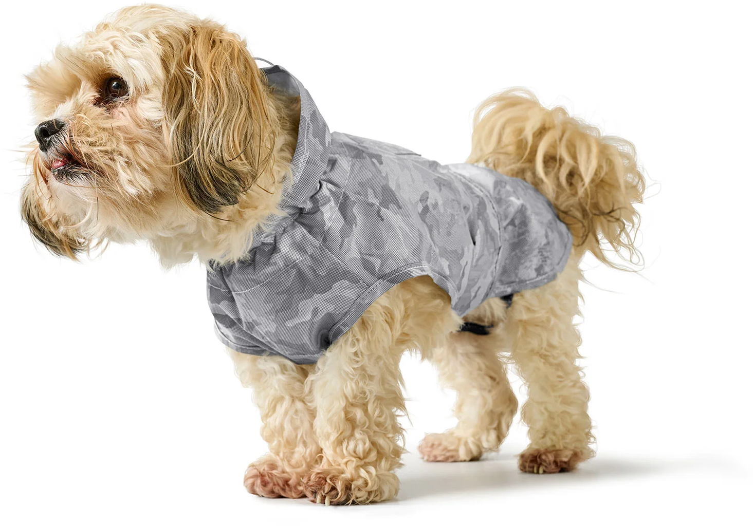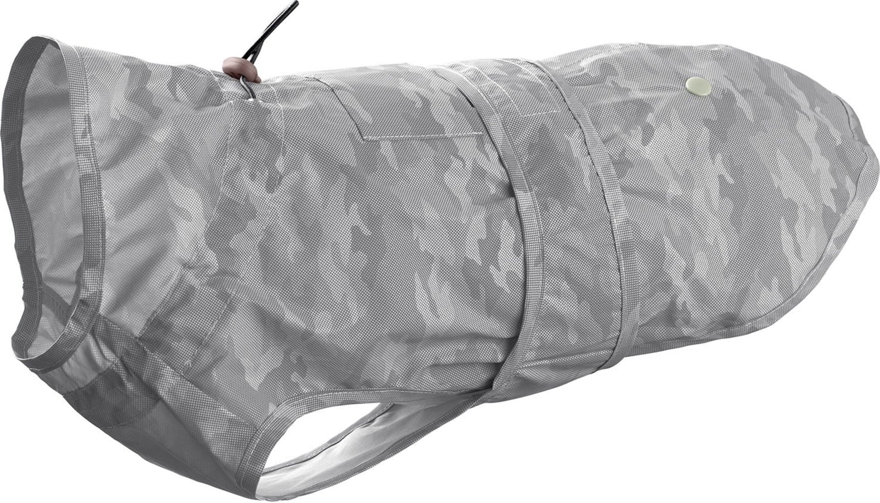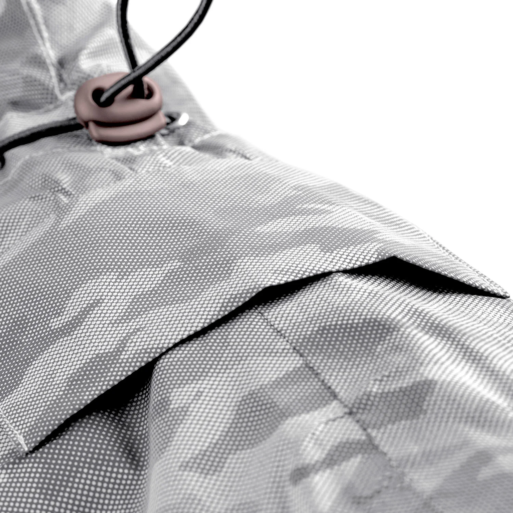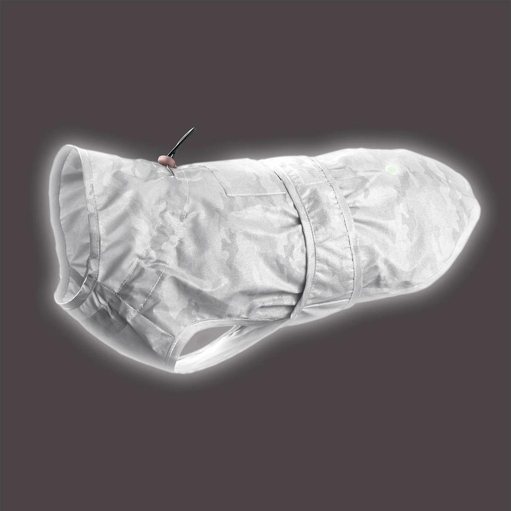 The lightweight, water-repellent coat keeps your dog dry from the neck to the lower back. The wide flap along the chest offers additional protection from wet ground. Its reflective camouflage pattern not only looks chic but also ensures better visibility in low-light conditions.