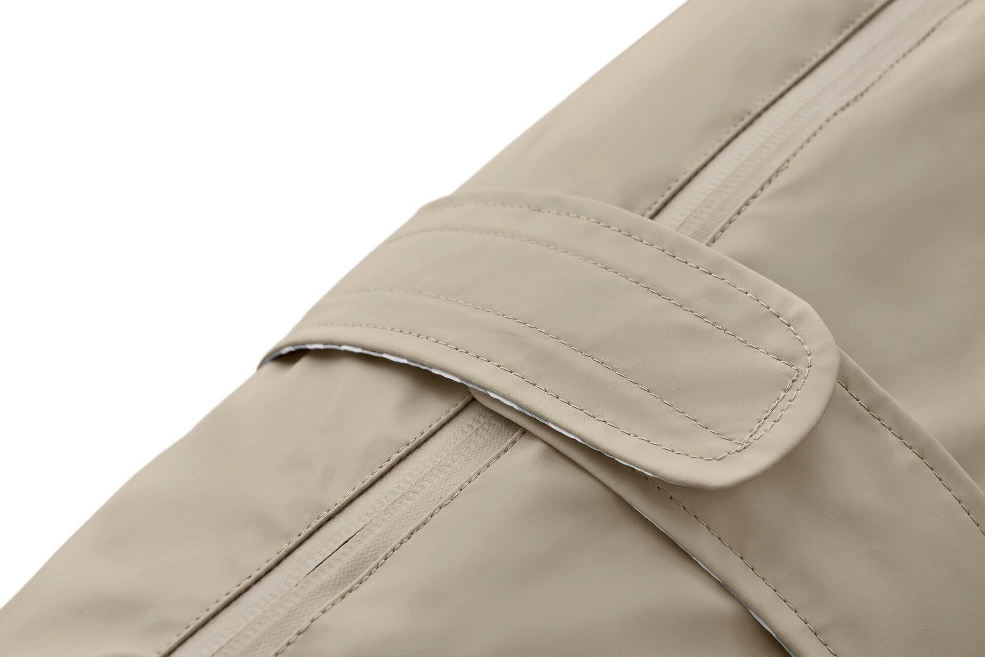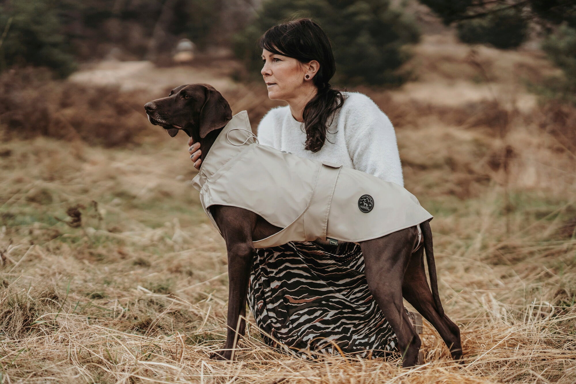 Stylish, classic, Milford! This mackintosh for dogs is in no way inferior to its owner's raincoat - it is as functional as it is stylish and tailored to the special needs of its wearer: Elasticated straps at the hind legs allow for a perfect fit, the material is lightweight but still provides optimum protection in stormy, muddy weather.