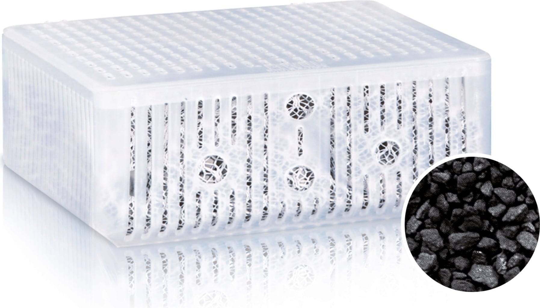 Each Bioflow system is equipped with five high-quality filter media. The optional Carbax basket is in the 6th place. This filter medium sets new standards in aquarium filtering with activated carbon. Carbax is a highly effective, hard coal-based granular activated carbon that was specially developed for cleaning and decolourising water-based liquids. Unlike common carbon filter media, the entire activated carbon grain is fully activated at Carbax and not just the grain surface. Carbax thus binds discolourations, odorous substances and toxic substances in a particularly long-lasting and quick manner and ensures crystal-clear water in your aquarium.