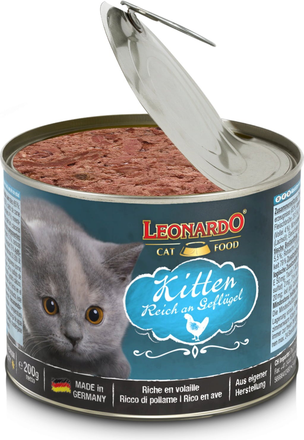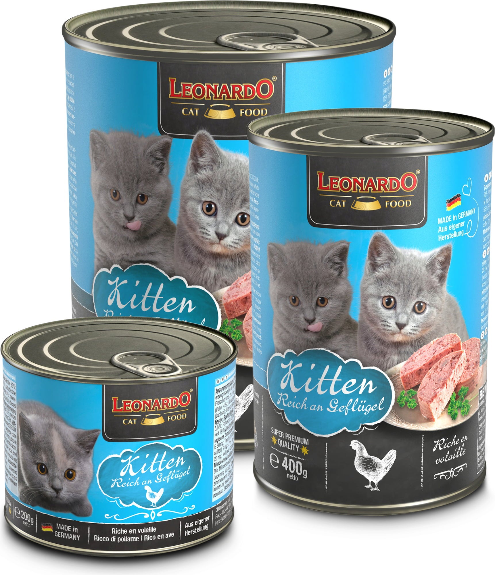 This premium wet pet food for kittens up to their first year indulges the palates of hungry cats with delicious poultry meat. Only fresh meat products are served in the feeding bowl, without the addition of grains or sugar.
