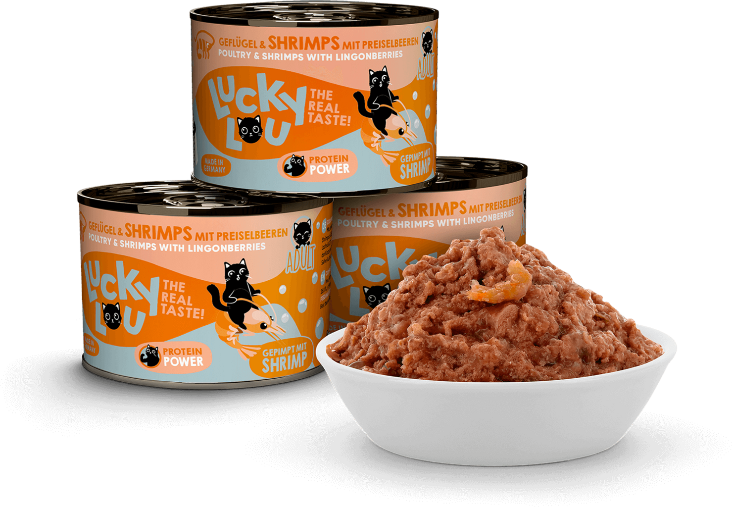 English reviews written for Lucky Lou Lifestage Adult Poultry & Shrimps