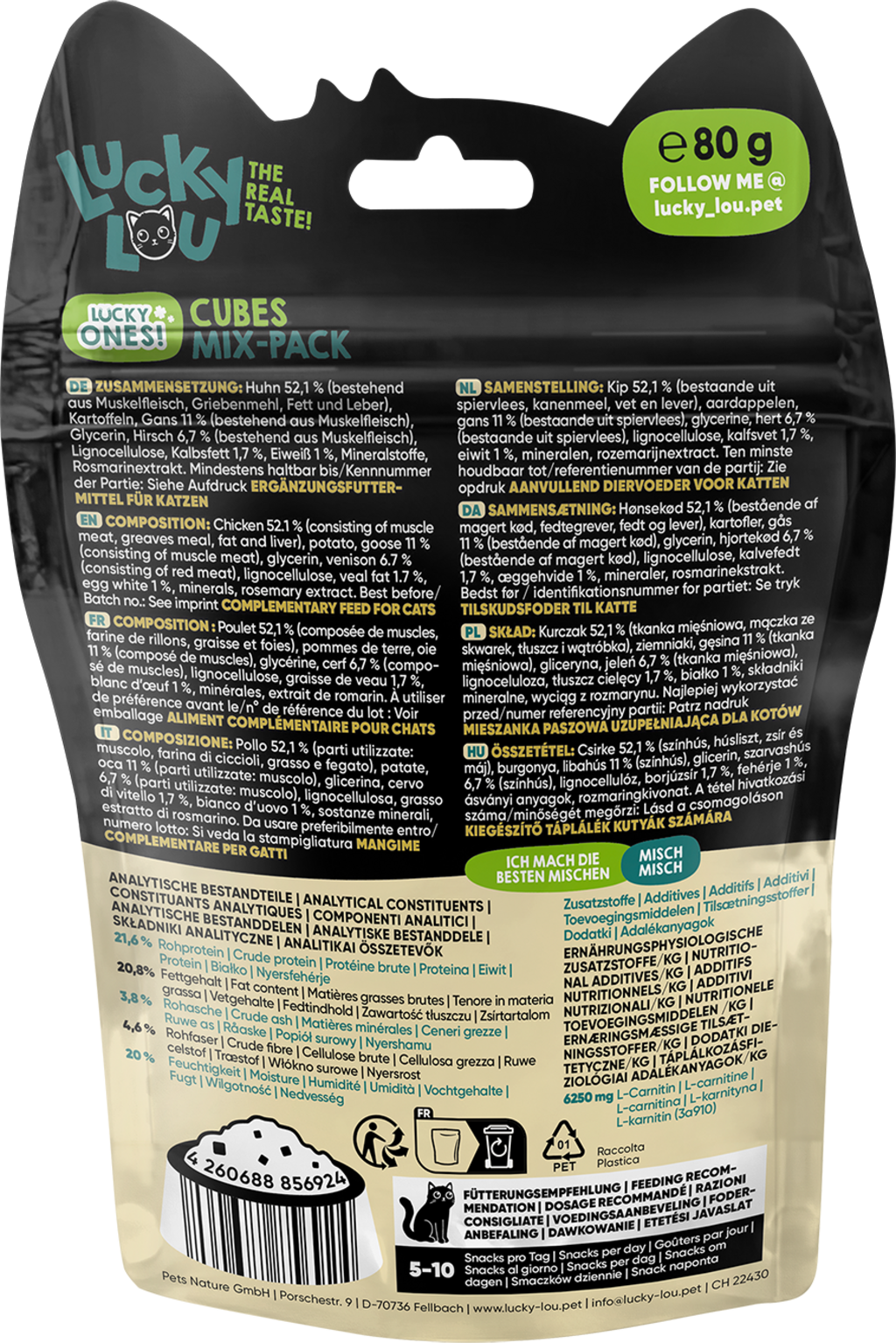 These meaty morsels will delight any cat, packed with ingredients that are simply irresistible. Whether as a high-quality snack between meals, a treat, or hidden within a cat toy, the delicious Lucky Ones Cubes are sure to please your cat.