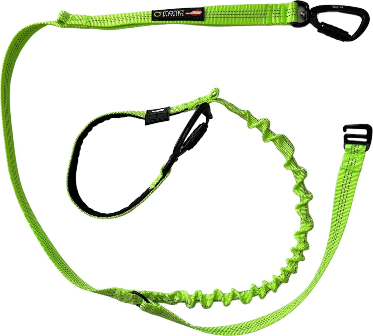 - The leash has a bungee section that can be locked, giving you the best control when you're walking without a waist belt. This makes the leash perfect for hiking or skiing. When the bungee section is unlocked, it reduces pulling and ensures more safety and comfort.