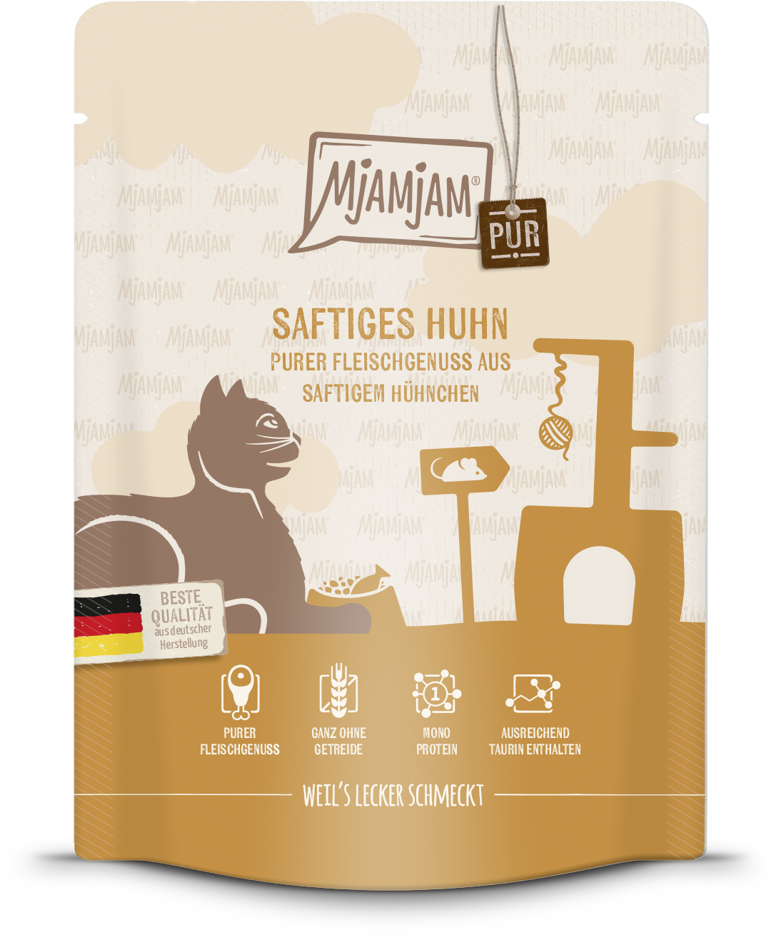 Mjamjam is committed to purity, which is why you'll find no cereals, sugars, preservatives, flavorings, or synthetic binders in this delicious food. It's completely free from lactose, vegetable by-products, and animal meal, ensuring a natural, wholesome meal for your pet. Enriched with taurine for added nutritional benefit.