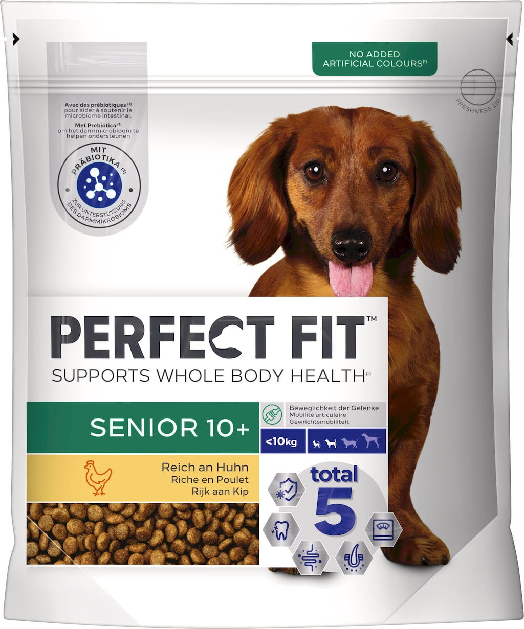Tailored to the specific nutritional needs of older dogs of small and very small breeds, Perfect Fit Senior Dog 10+ provides your senior dog with a species-appropriate and age-appropriate nutritional basis to remain vital and active even in advanced age.