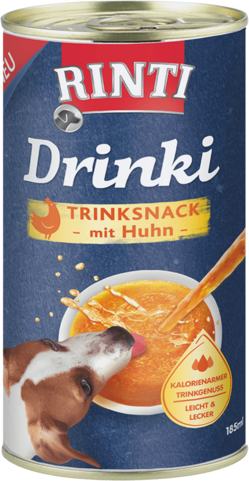 Drinki is the perfect liquid snack for your dog! Whether as a reward or a treat in between: this low-calorie snack is simply irresistible! It is particularly important to drink enough when feeding a diet of dry food. You should also ensure that your dog consumes enough fluids during sport and play. But don't worry – with Rinti Drinki, drinking becomes a pleasure, as it gives the water in the bowl an enchanting flavour, with the finest meat pieces!
