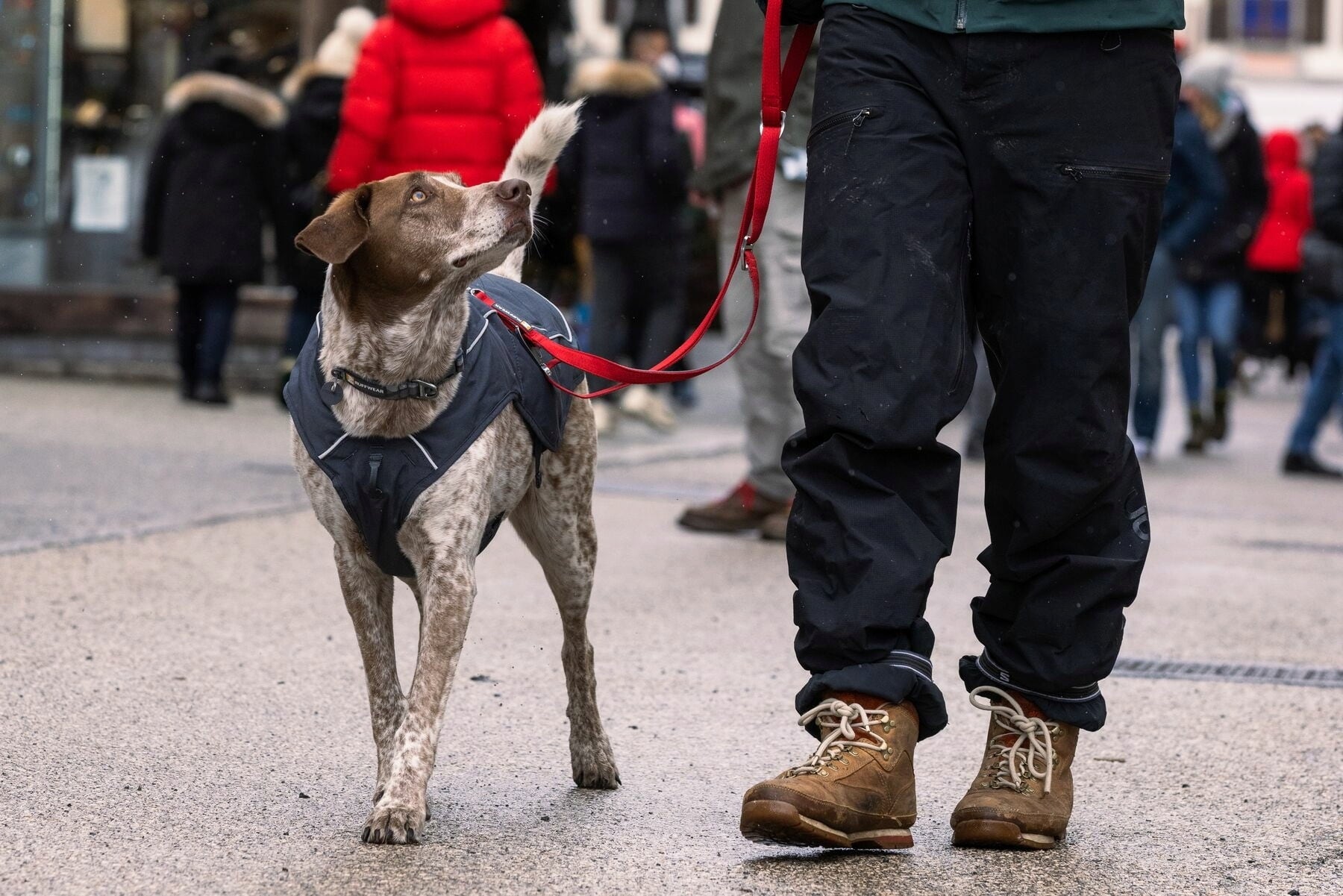 Thanks to its relaxed fit, waistcoat cover, and side buckles, the overcoat is easy to put on and take off. The integrated harness makes it perfect for walks in the city park or other places where your dog needs to stay connected to you—perfect for situations requiring a leash. It features a practical aluminium V-ring and a reinforced fabric loop, ideal for lead attachment.