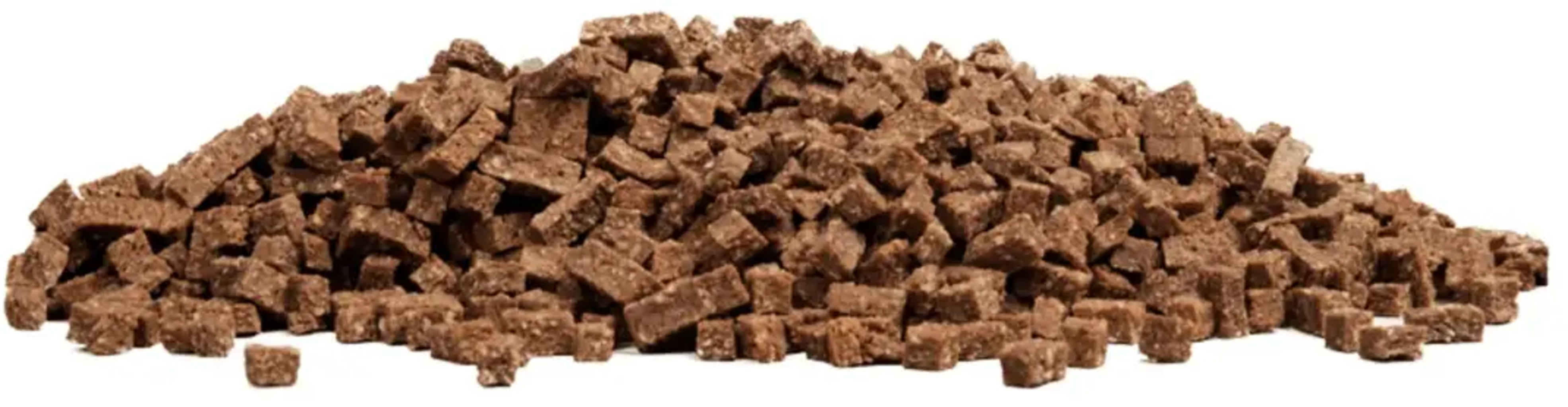 Tasty treats with extra meat. These naturally dried organic chicken cubes are the perfect source of protein. Refined with beechwood smoke and purely natural, they do not contain grains or sugar. The resealable bag makes them suitable as a training snack. Also ideal for small dogs.