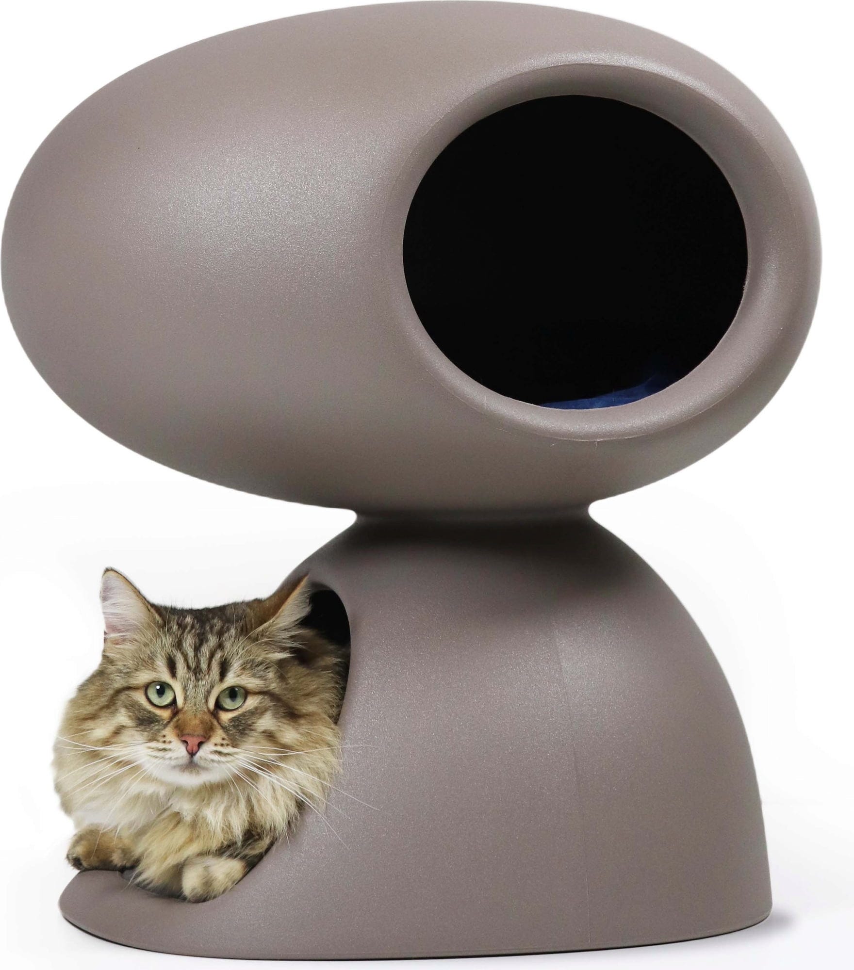 A great designer retreat for your kitty. Cat Cave resembles two rounded stones stacked on top of each other. The lower cave comes with a scratching mat. The upper cave has a soft cushion where your kitty can relax and enjoy the view.