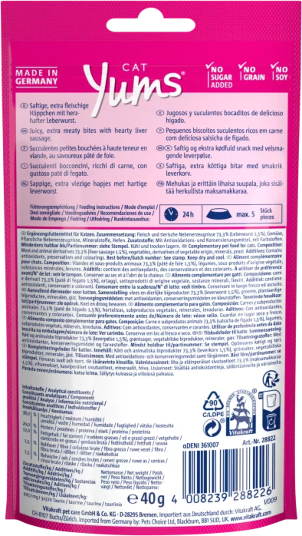 Vitakraft Cat Treats by Vitakraft Cat Yums® +, Liverwurst (40 g)