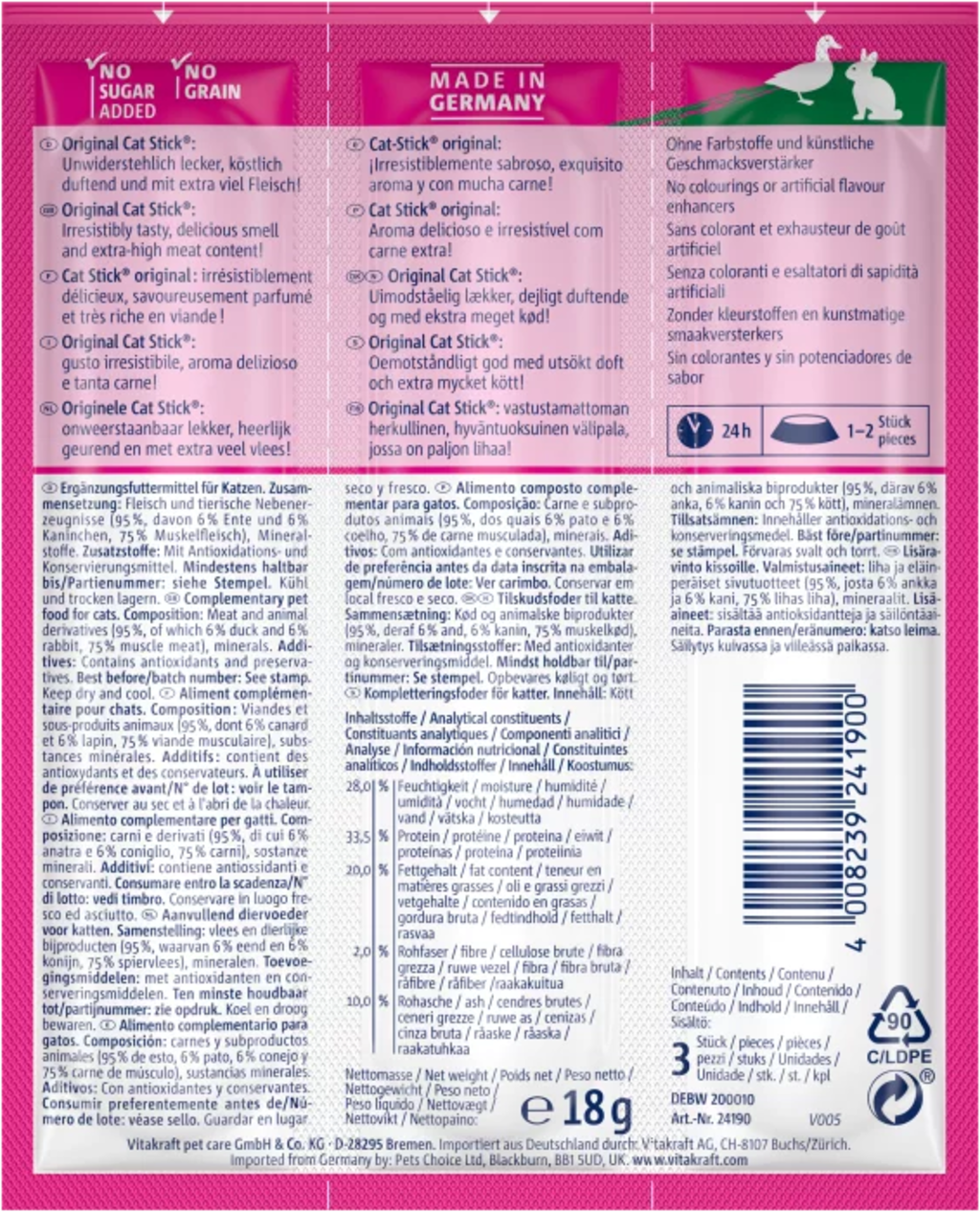 Vitakraft Cat Treats Cat Stick® + by Vitakraft, Duck & Rabbit (18 g)