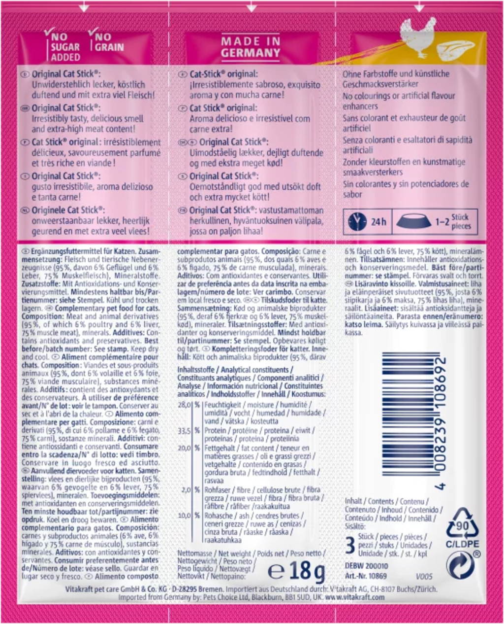 | Manufacturer: | Vitakraft pet care GmbH & Co. KG, Mahndorfer Heerstr. 9, 28307, Bremen, Germany, www.vitakraft.com/de/de |