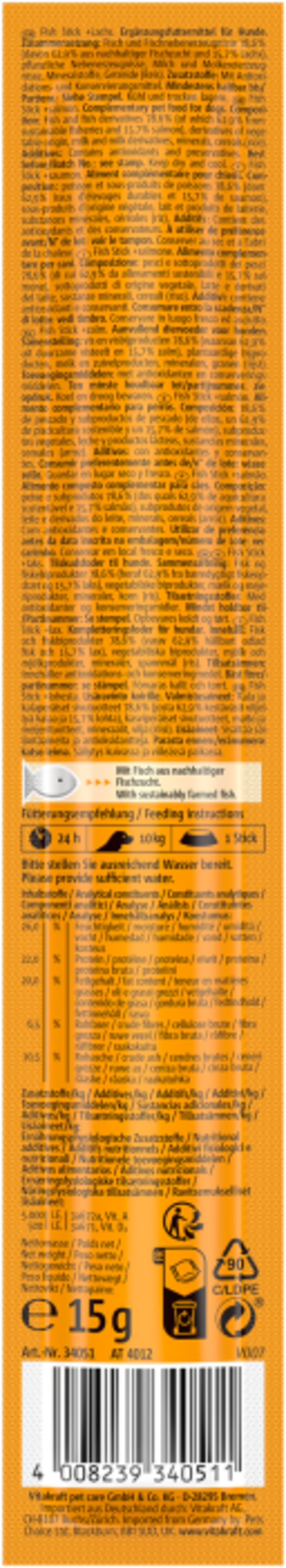 Vitakraft Dog treats Fish Stick + Salmon by Vitakraft, 15 g