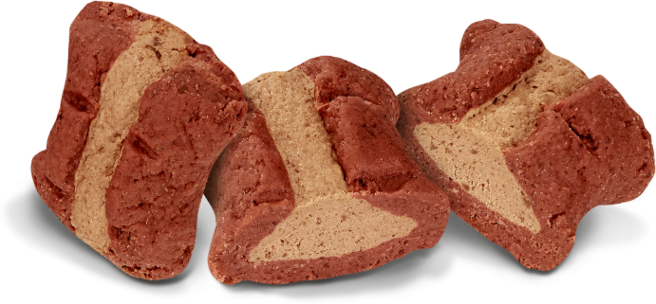 Exquisite ingredients, a hearty filling and gentle oven-cooking make these bits an irresistibly juicy treat for your dog. Whether as a snack between meals or as a reward, these morsels are a special way to treat your pet.