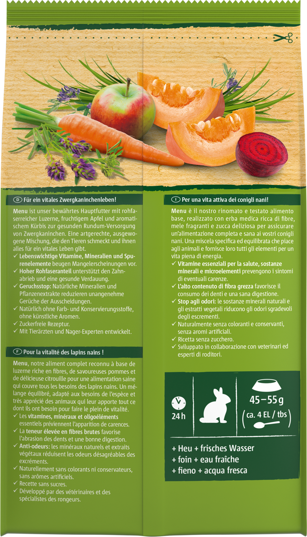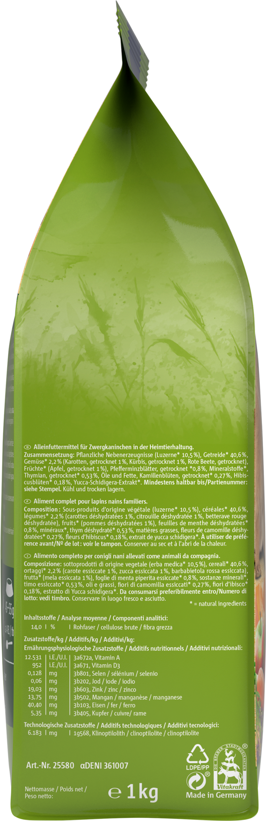 This high-quality complete pet food is the number one choice for countless dwarf rabbits and, with its balanced and species-appropriate formulation, makes a valuable contribution to the vital life of your pets. This ensures that your dwarf rabbits receive optimal nutritional care.